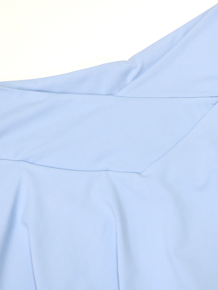 - High-waist mini skirt with a unique V-cut design