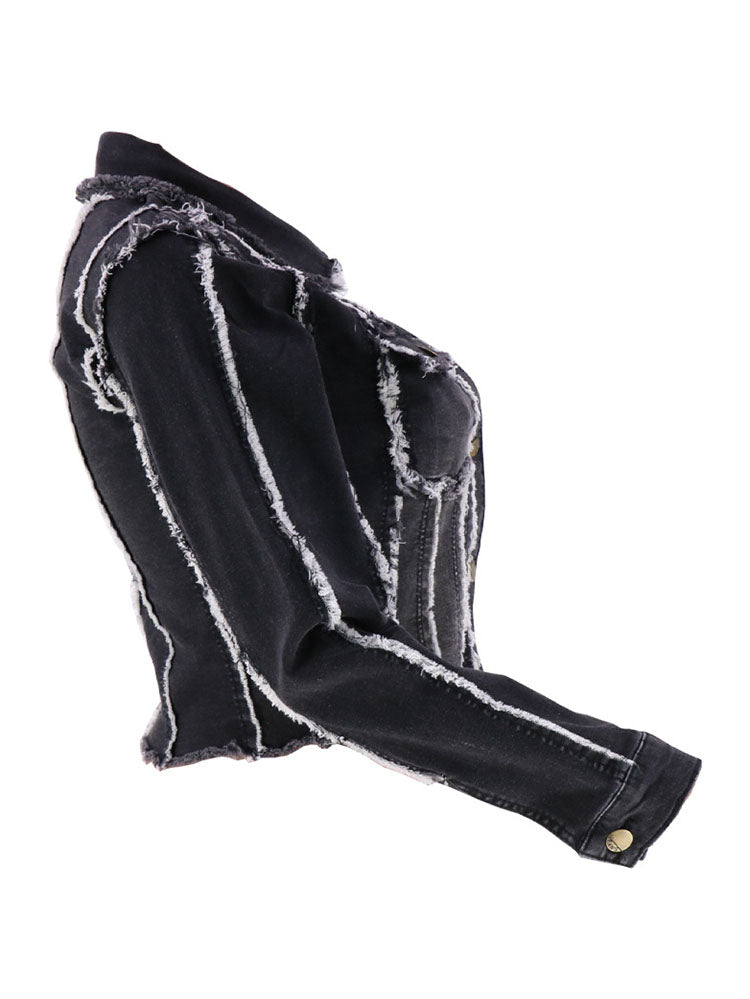 Features: Denim, long sleeves, button, stretchy, ripped, striped, short jackets.