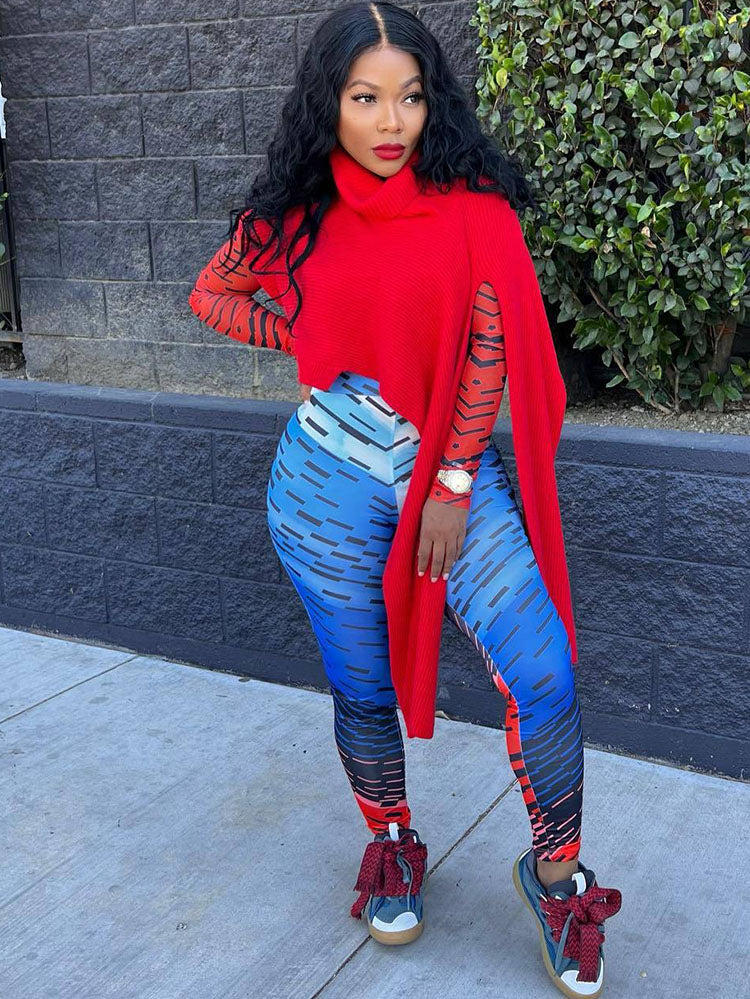 Sleeveless Turtleneck Asymmetrical Sweater
