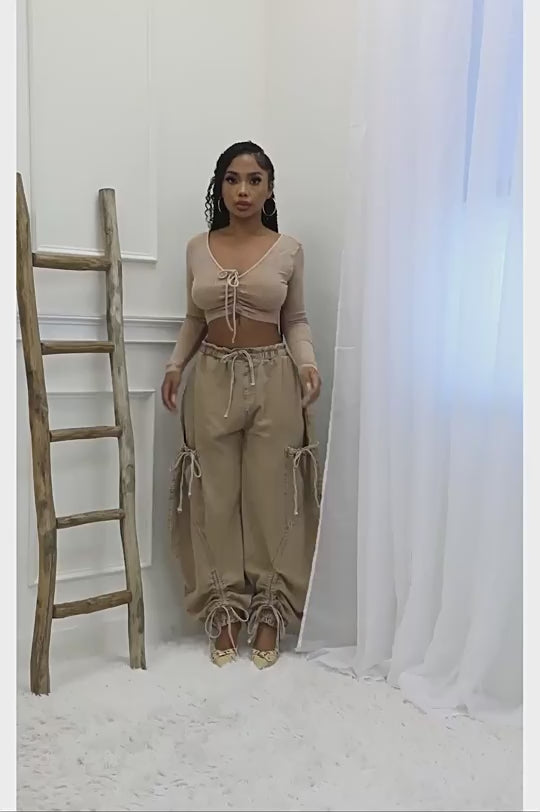 Bow Tie Elastic Waist Loose Jeans