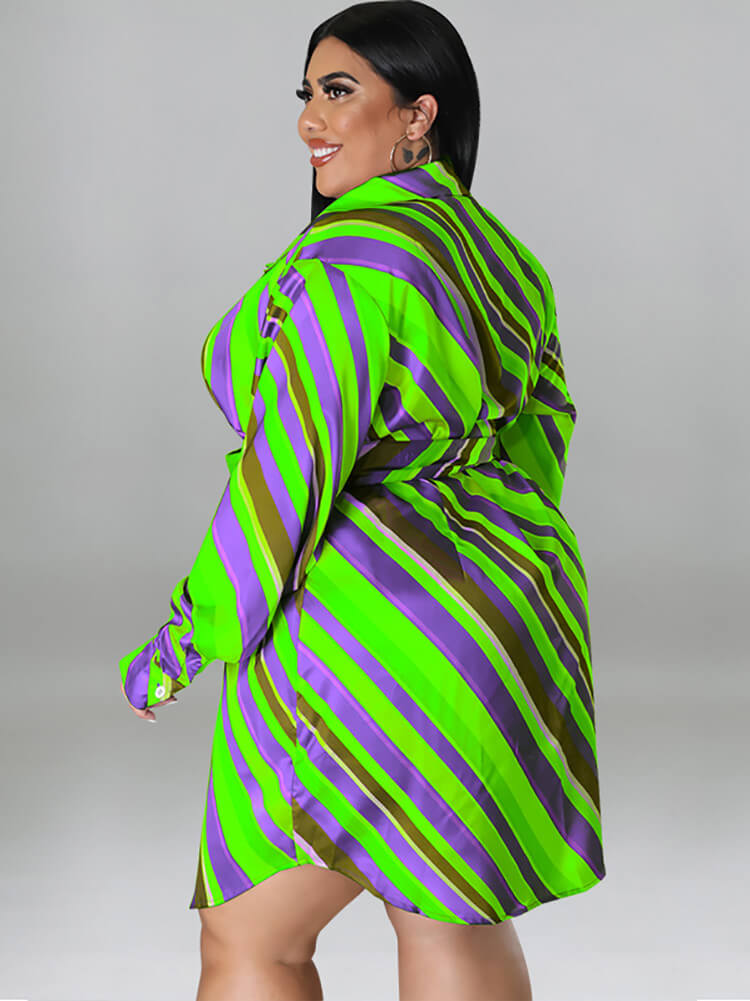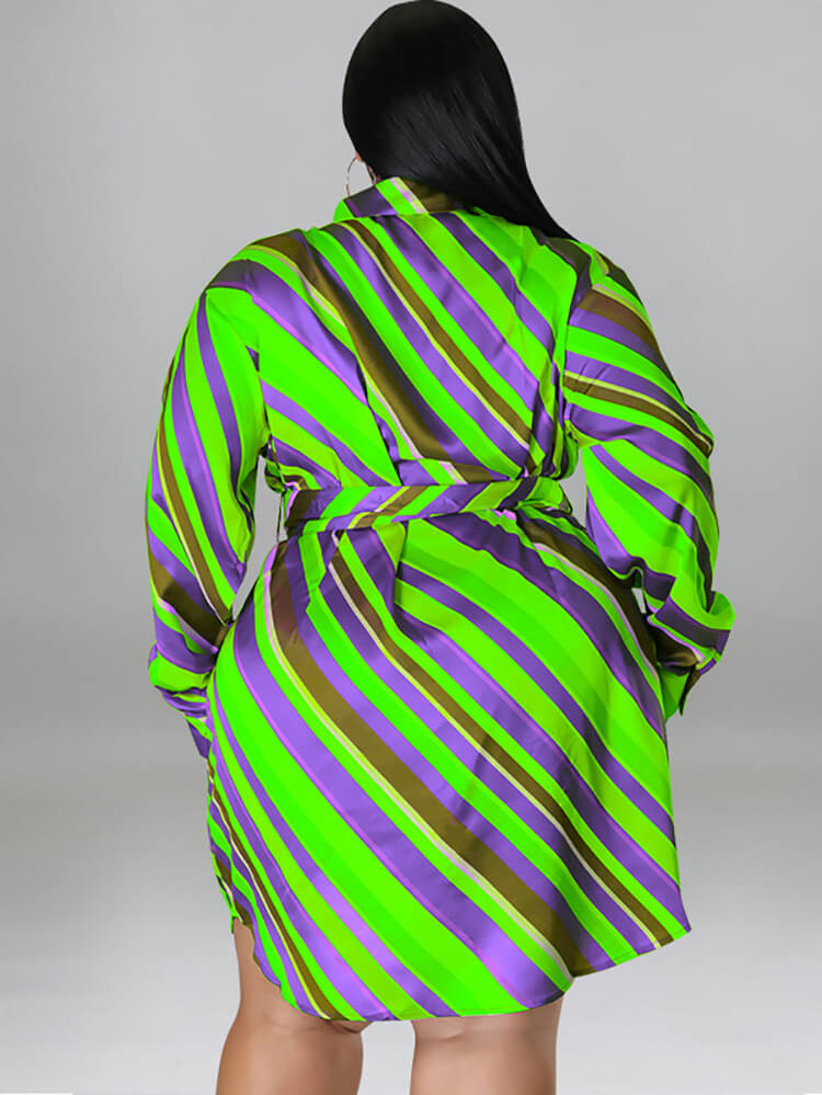 Long Sleeve Striped Mini Dress With Belt