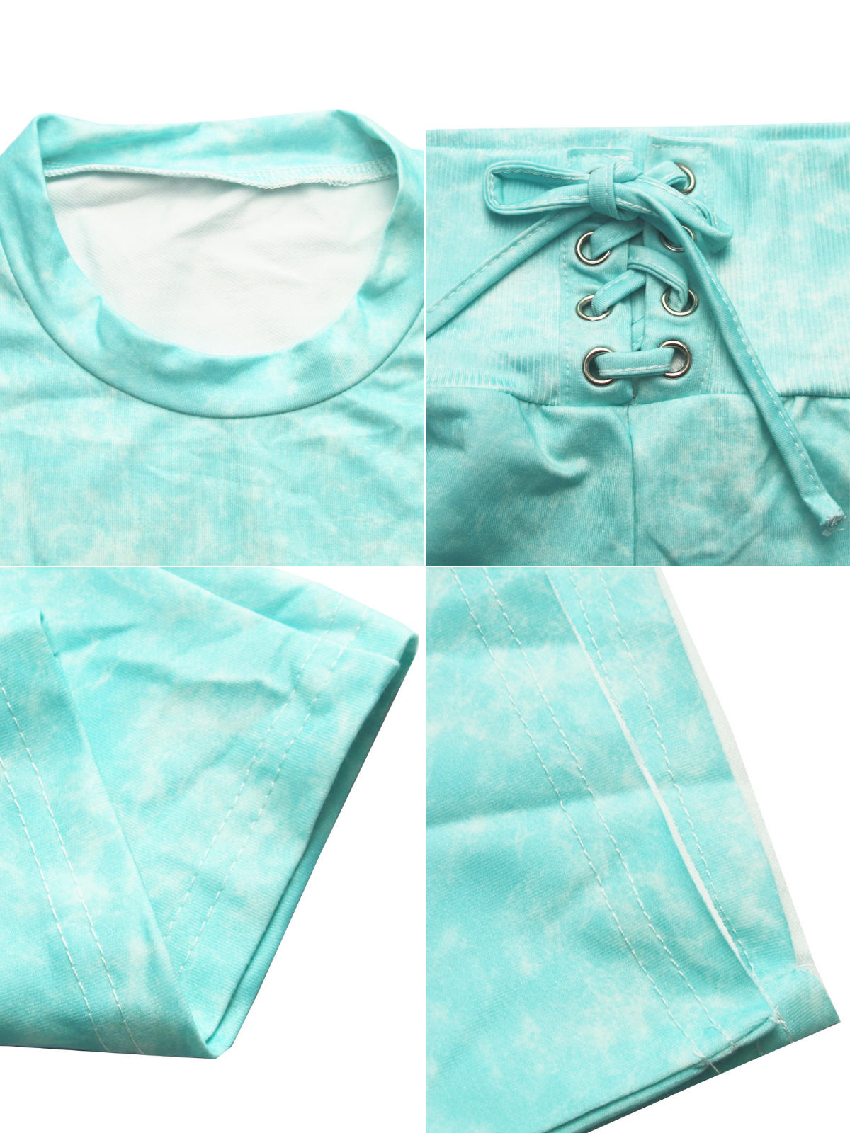 Tie-Dye Short Sleeve Crop Top Tie-Waist Pants Set