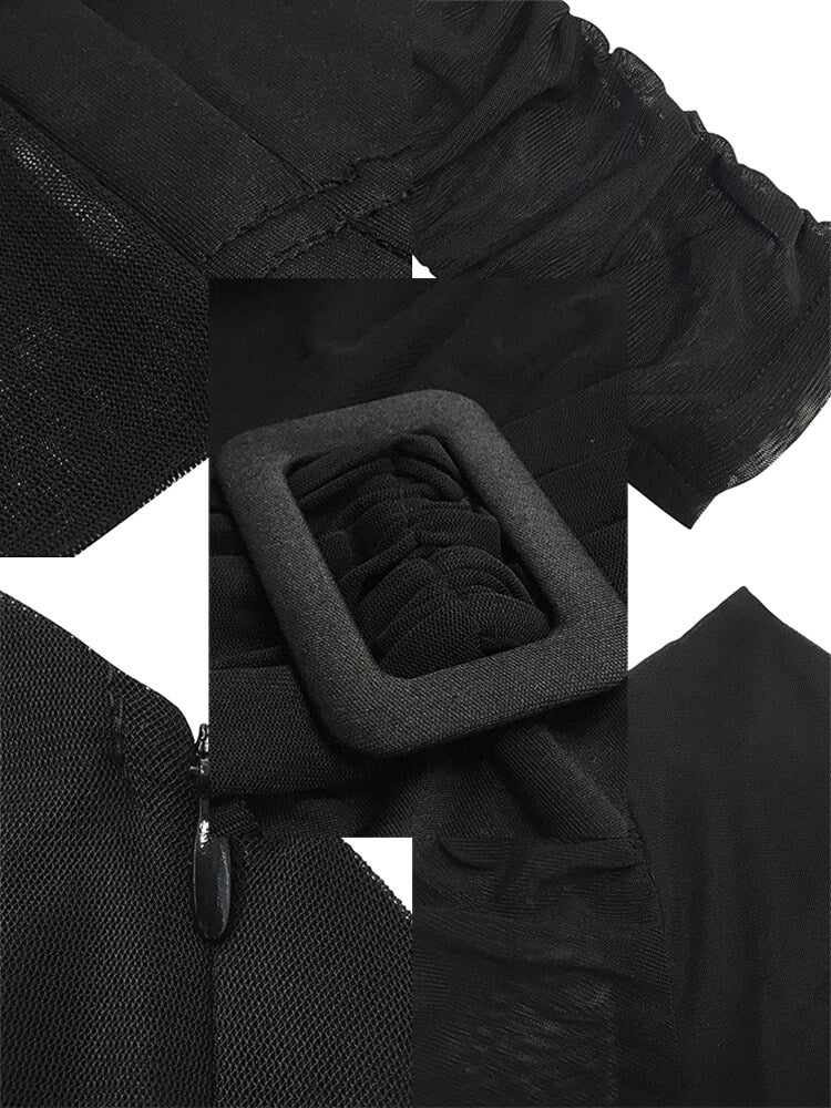 Característica: manga larga, un hombro, color sólido, fruncido, malla, patchwork, bodycon, mono de una pieza. El estilo único te pone a la moda.