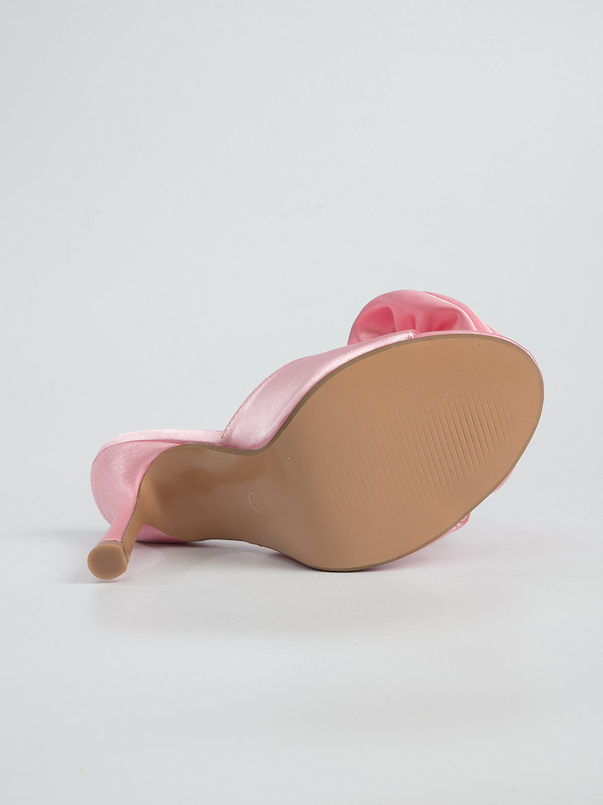 Mules con tacón de aguja y estampado floral de satén con punta abierta