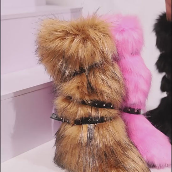 Y2K Faux Fur Cross Strap Buckle Boots