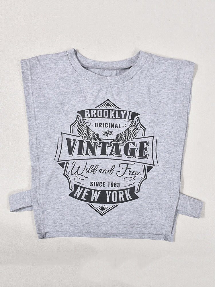 Top corto estampado sin mangas con abertura