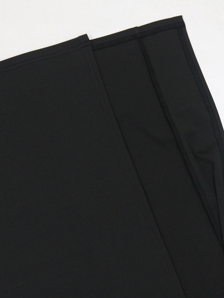 - Skirt: High slit, figure-hugging silhouette, elastic waist