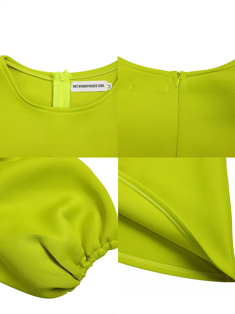 Característica: manga abullonada, manga corta, fruncido, cuello redondo, color sólido, bodycon, vestidos midi.