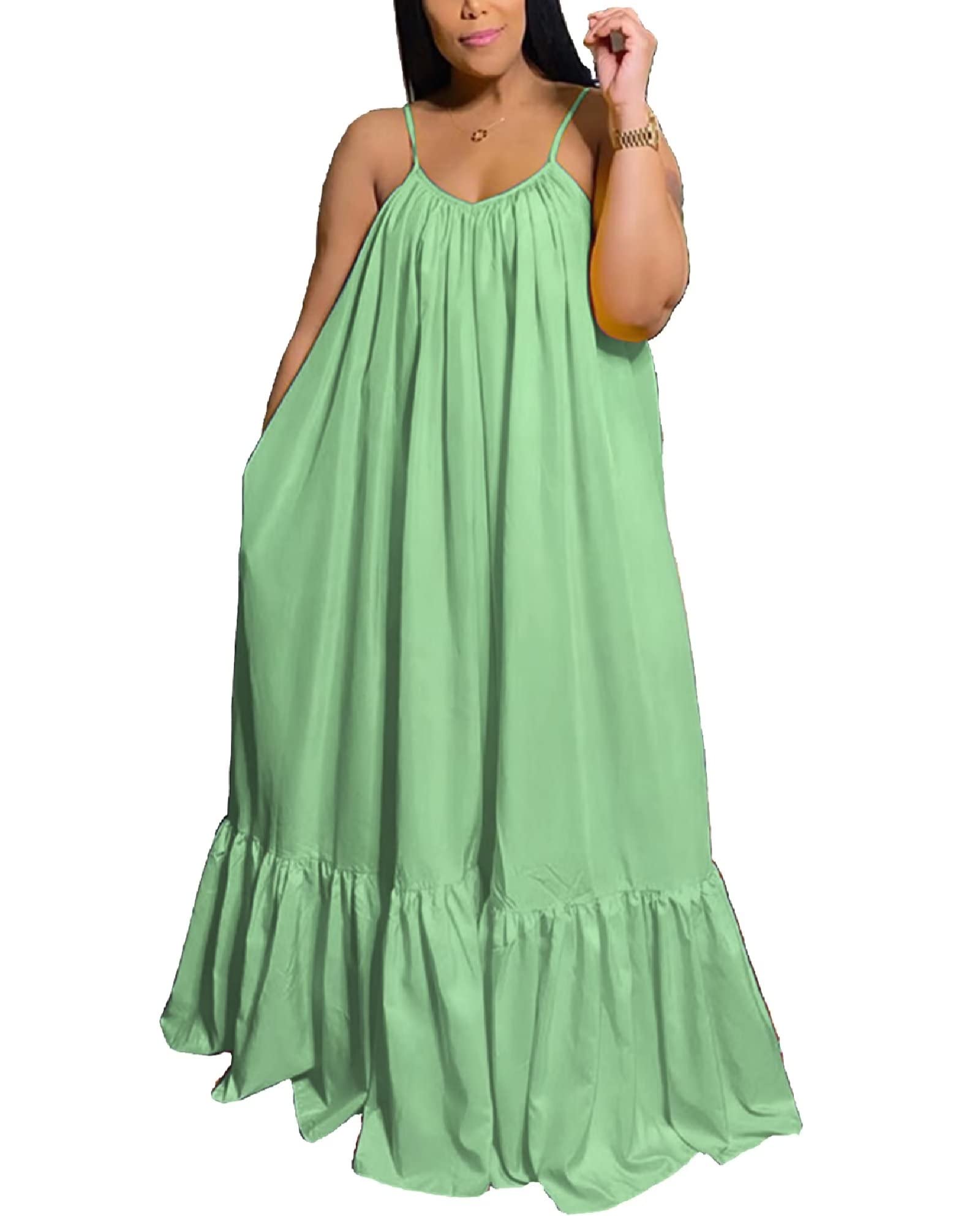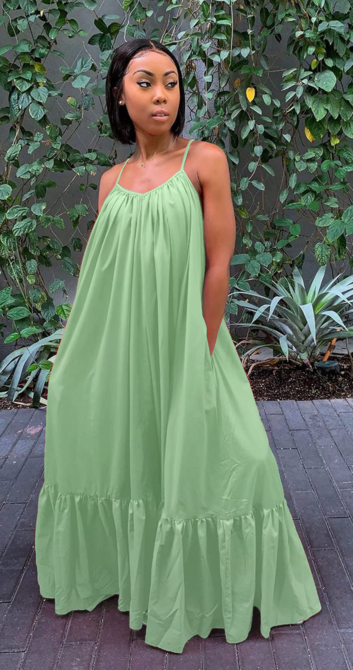 | Spaghetti Strap Loose Swing Dress | Light Green | 5X-Large | 1 |
