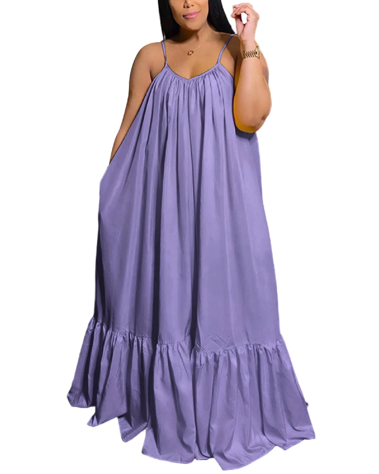 | Spaghetti Strap Loose Swing Dress | Light Purple | 4X-Large | 1 |