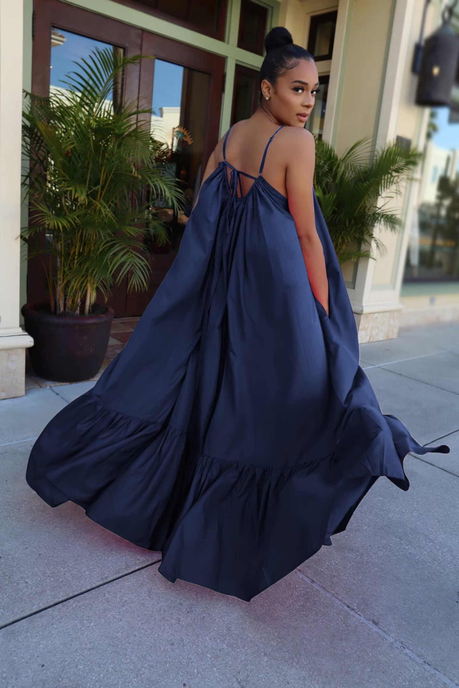 | Spaghetti Strap Loose Swing Dress | Navy Blue | Small | 1 |