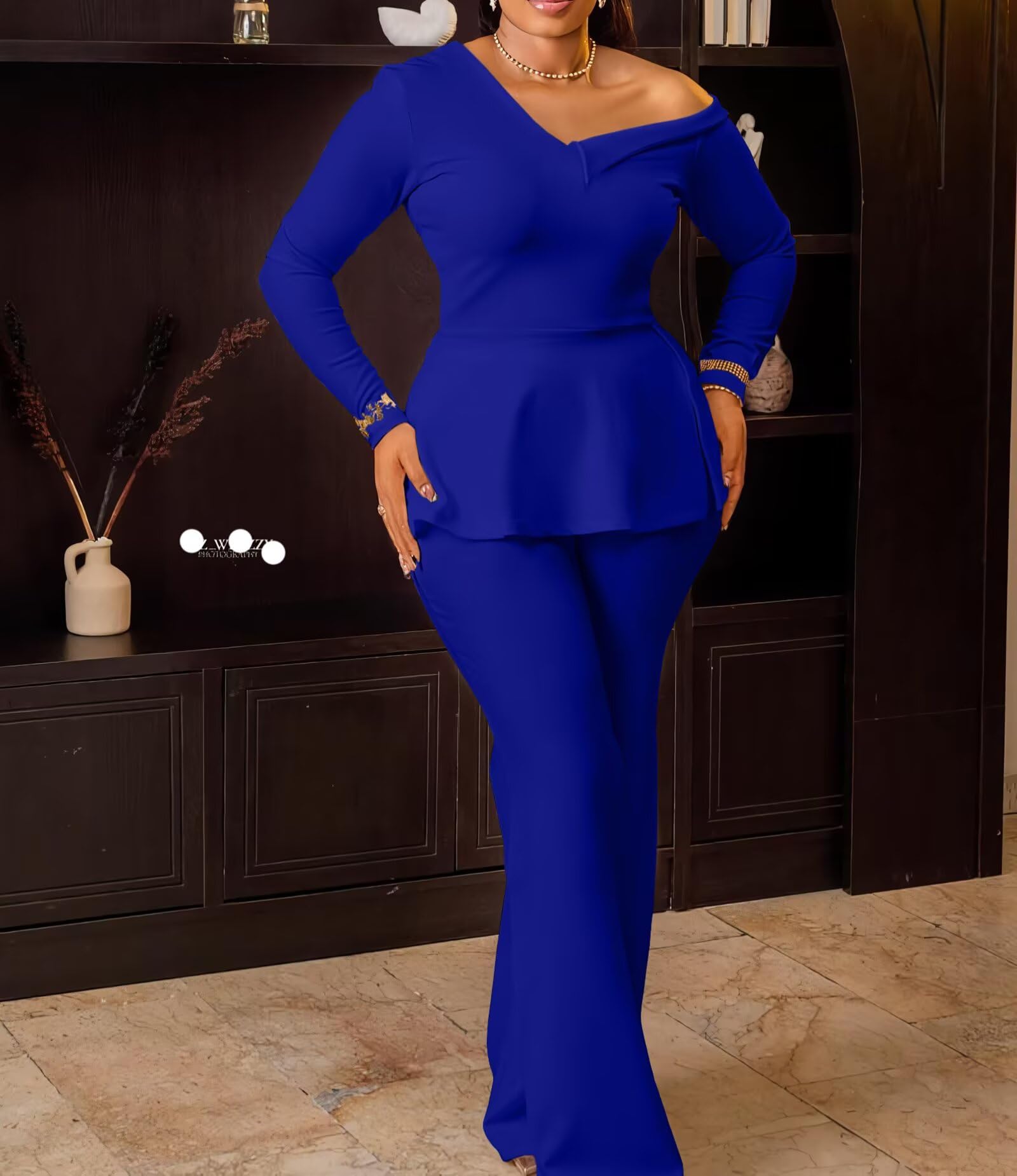 | women sexy one shoulder pant set | Royal Blue | Medium | 2 |