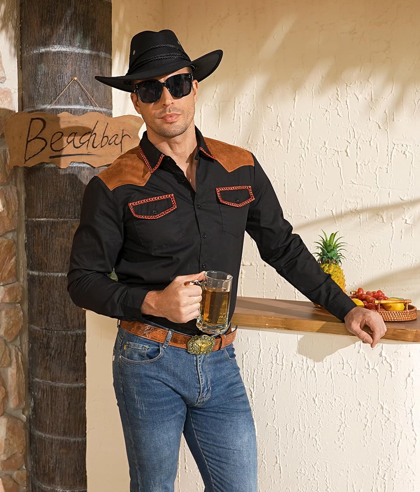| Men's Western Cowboy Shirt | Black | Large | 4 |