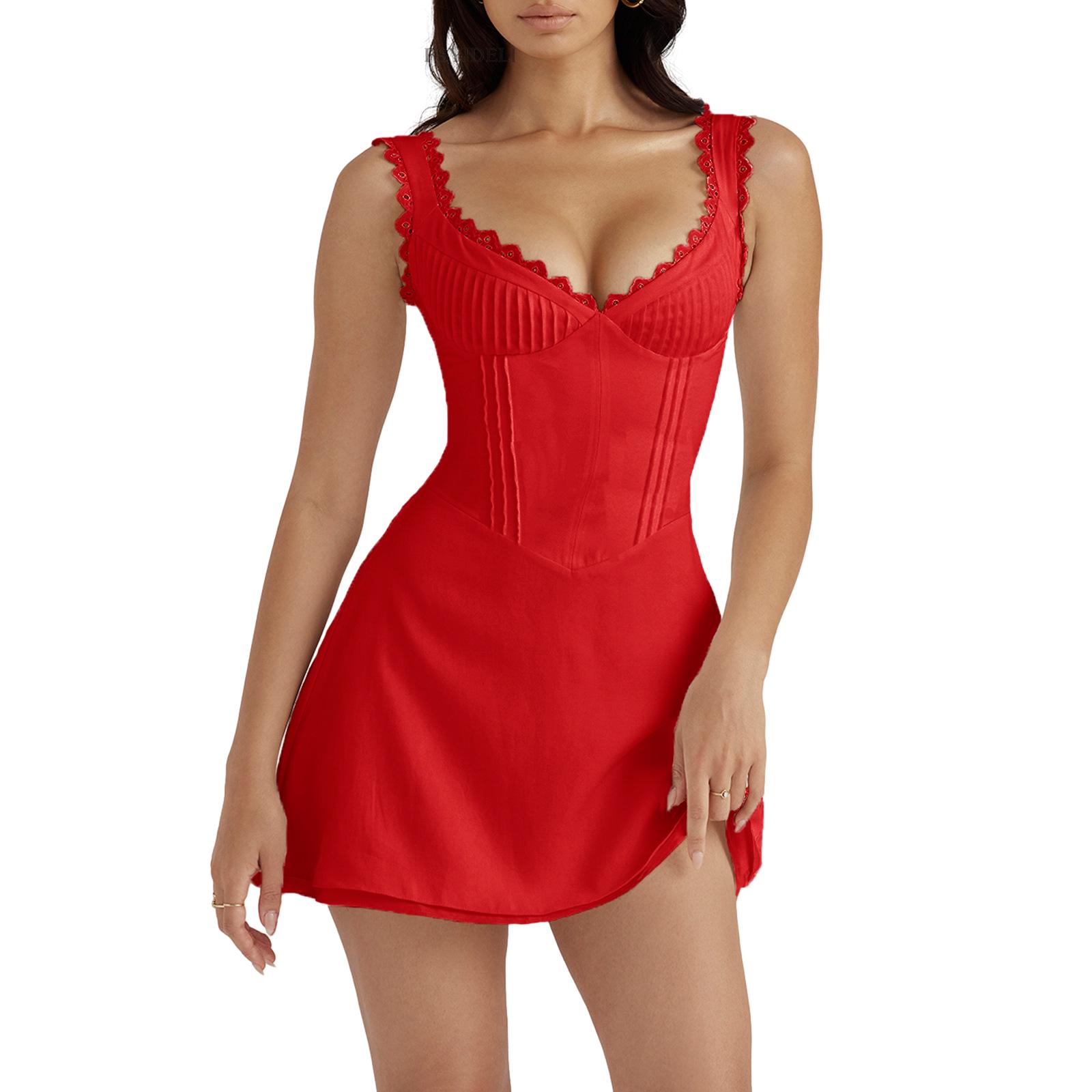 | Vestido de verano sexy para mujer | Rojo | METRO | 1 |