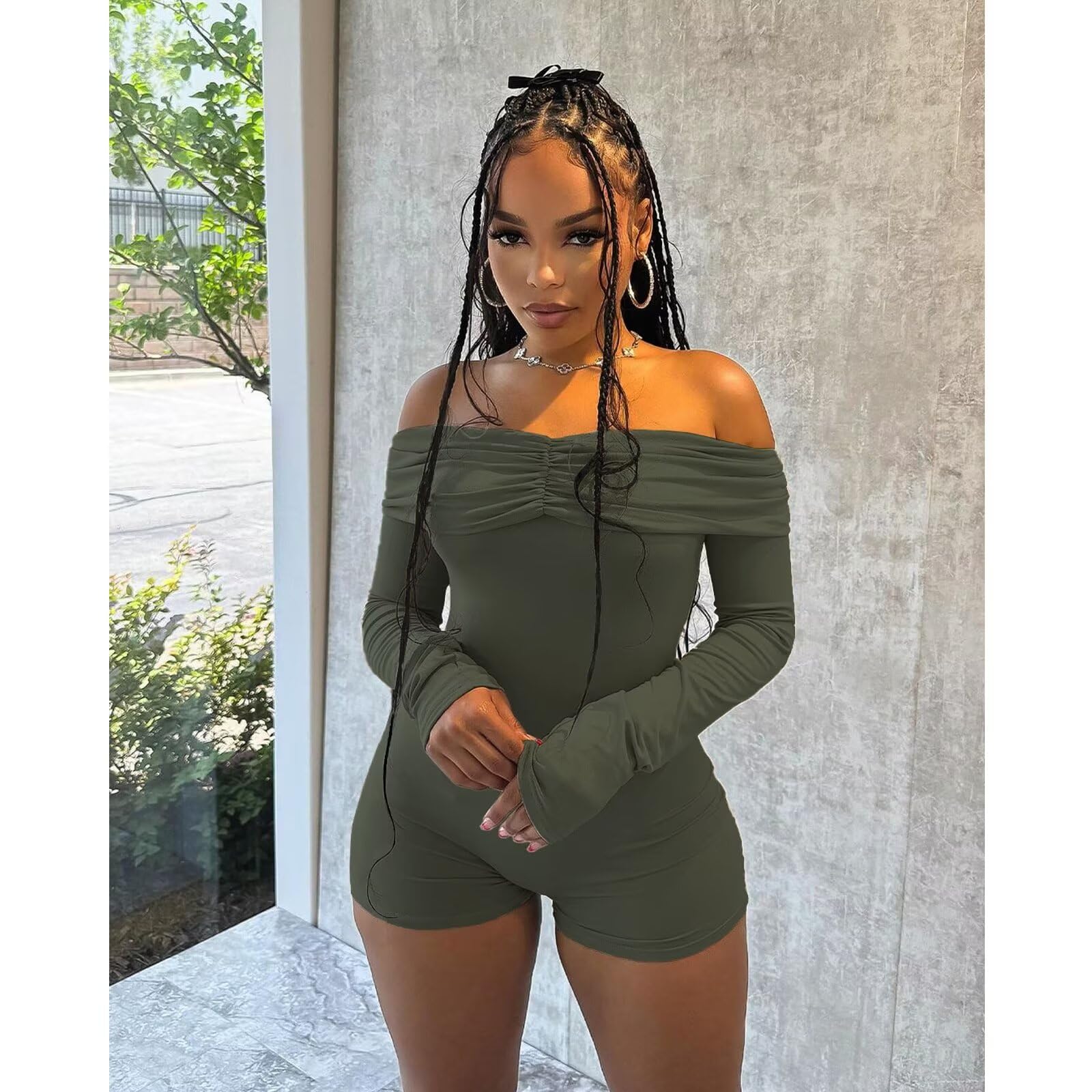 | Off Shoulder Pleated Short Jumpsuit | Green | Large | 1 |