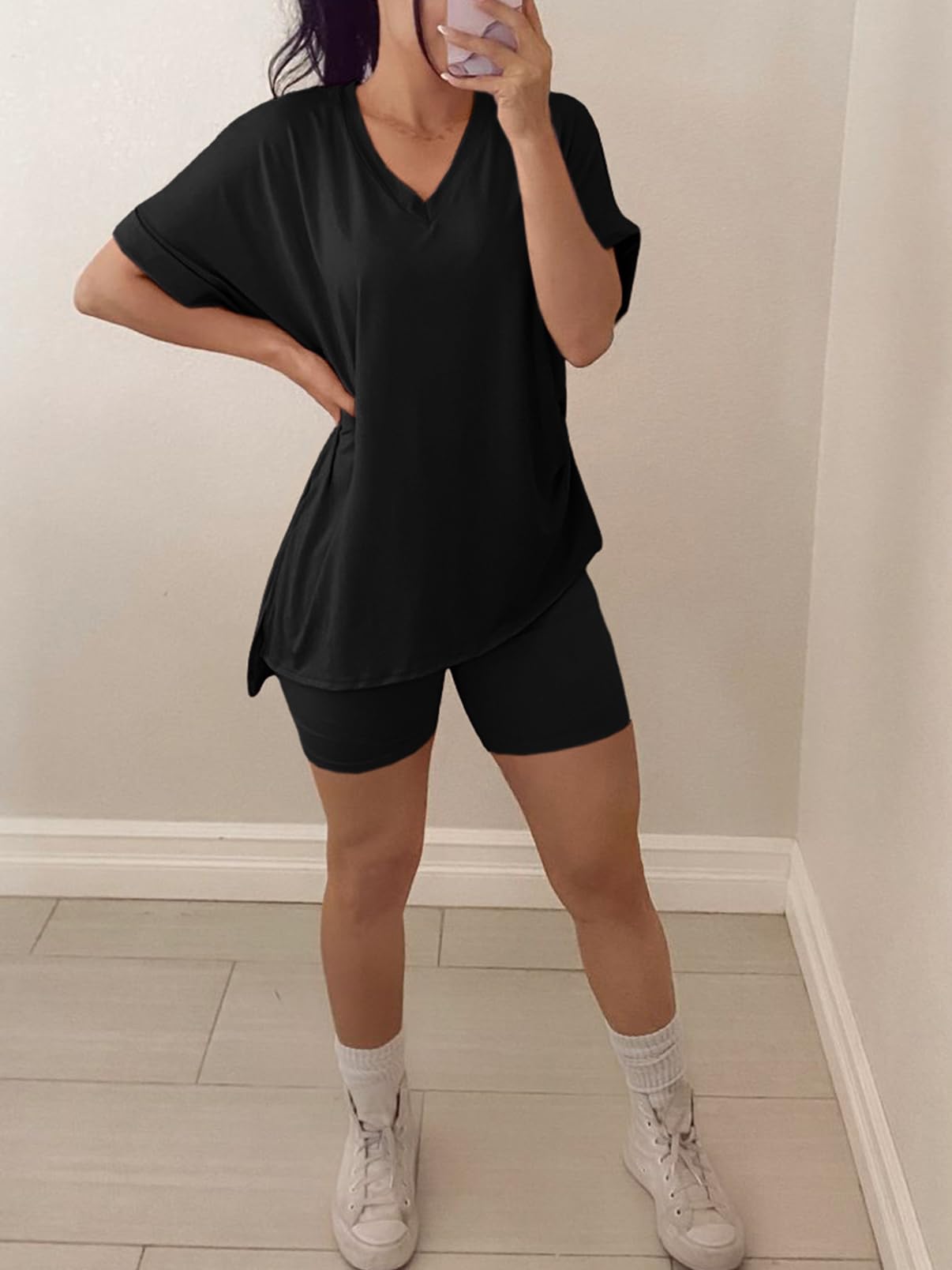 | 2 Piece Shorts Set Airport Outfits | Black | Small | 3 |