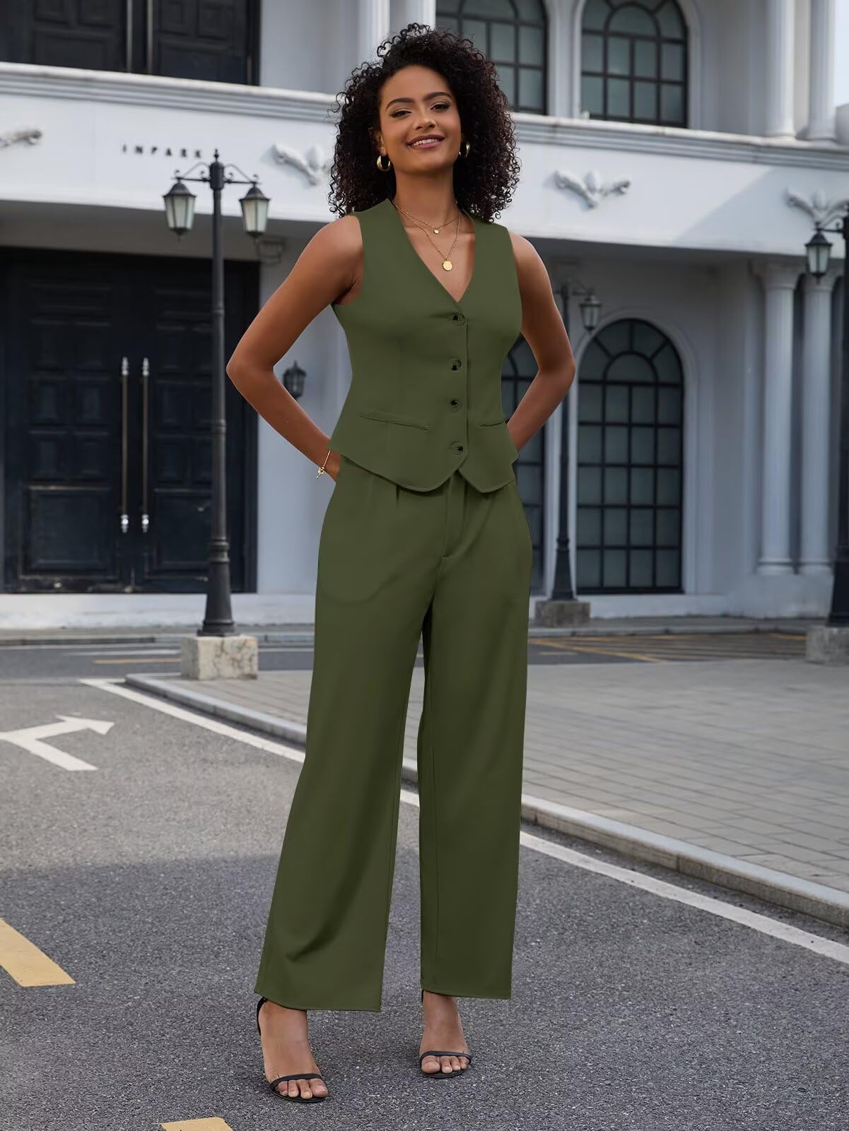Women's 2 Piece Pant Suits 3011-amy Green Large 1