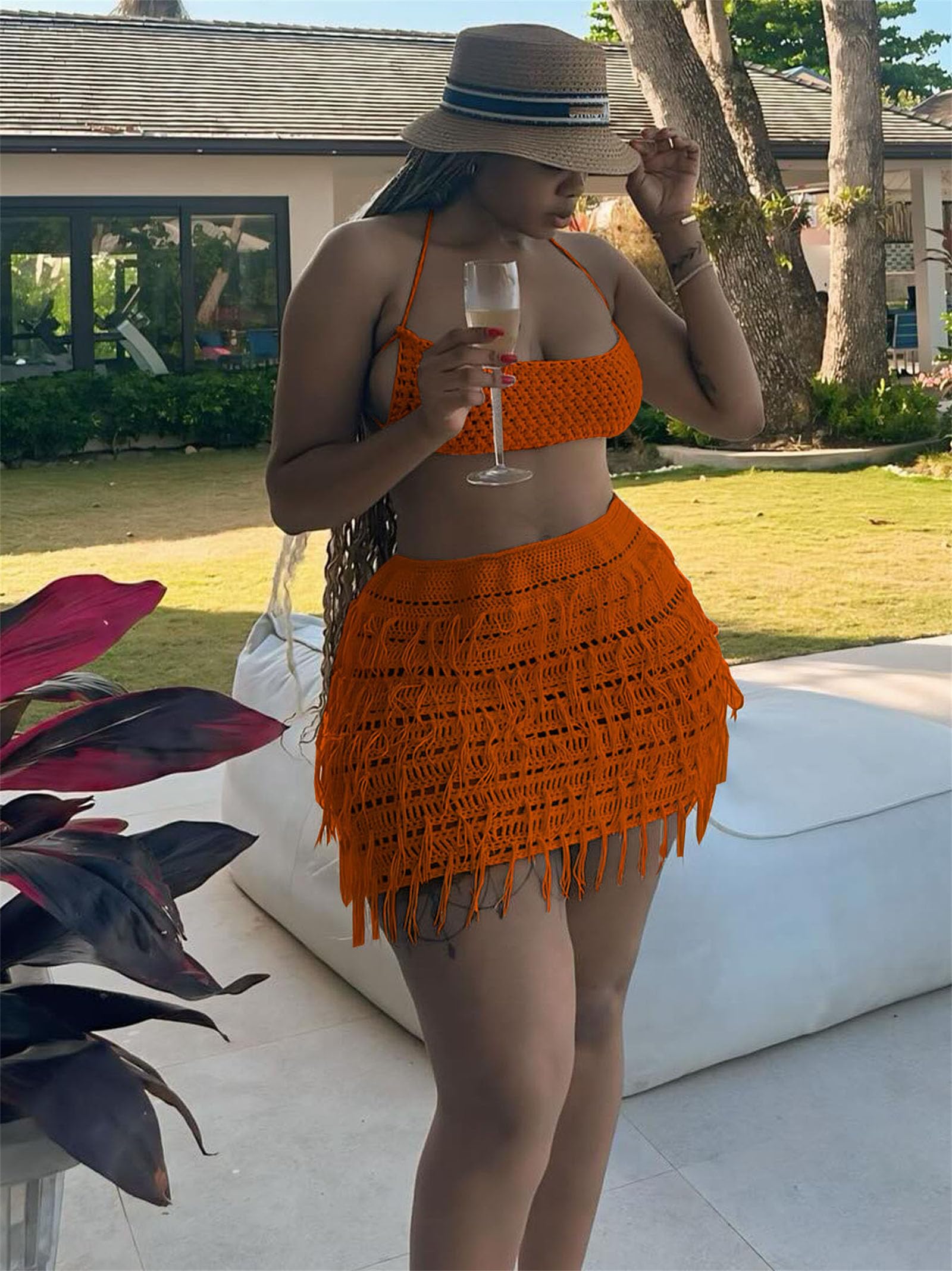 | women sexy 2 piece skirt set | Orange | Small | 2 |