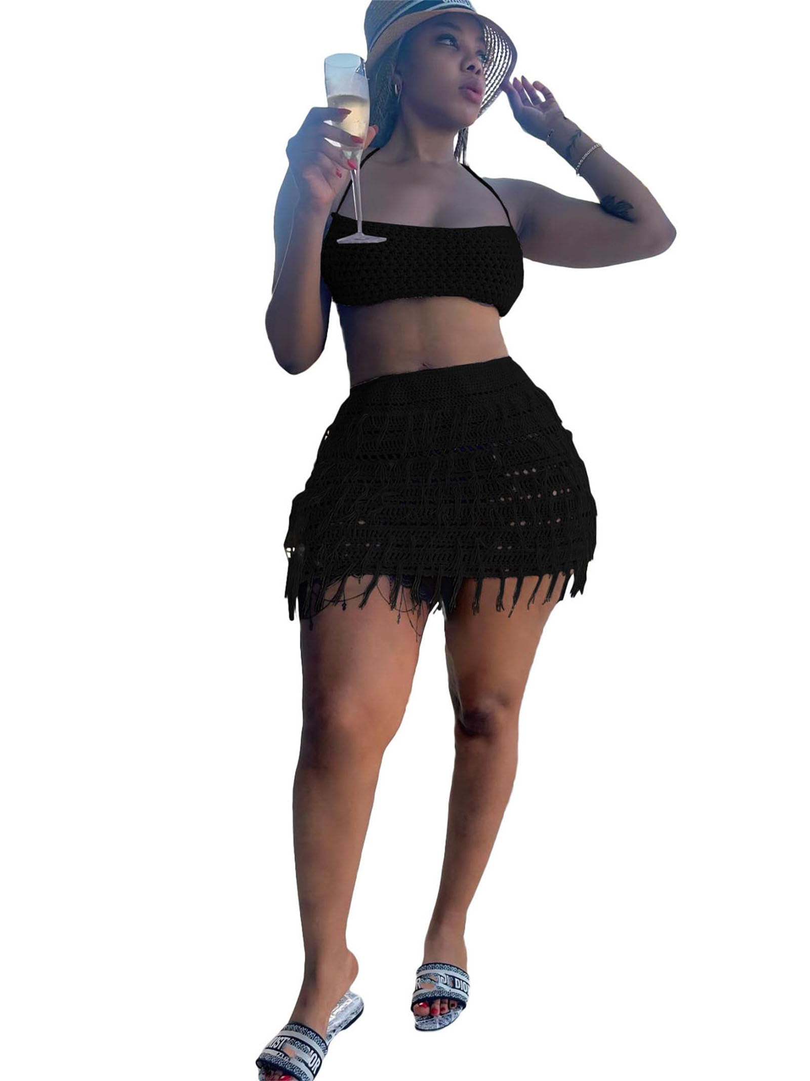 | women sexy 2 piece skirt set | Black | Medium | 1 |