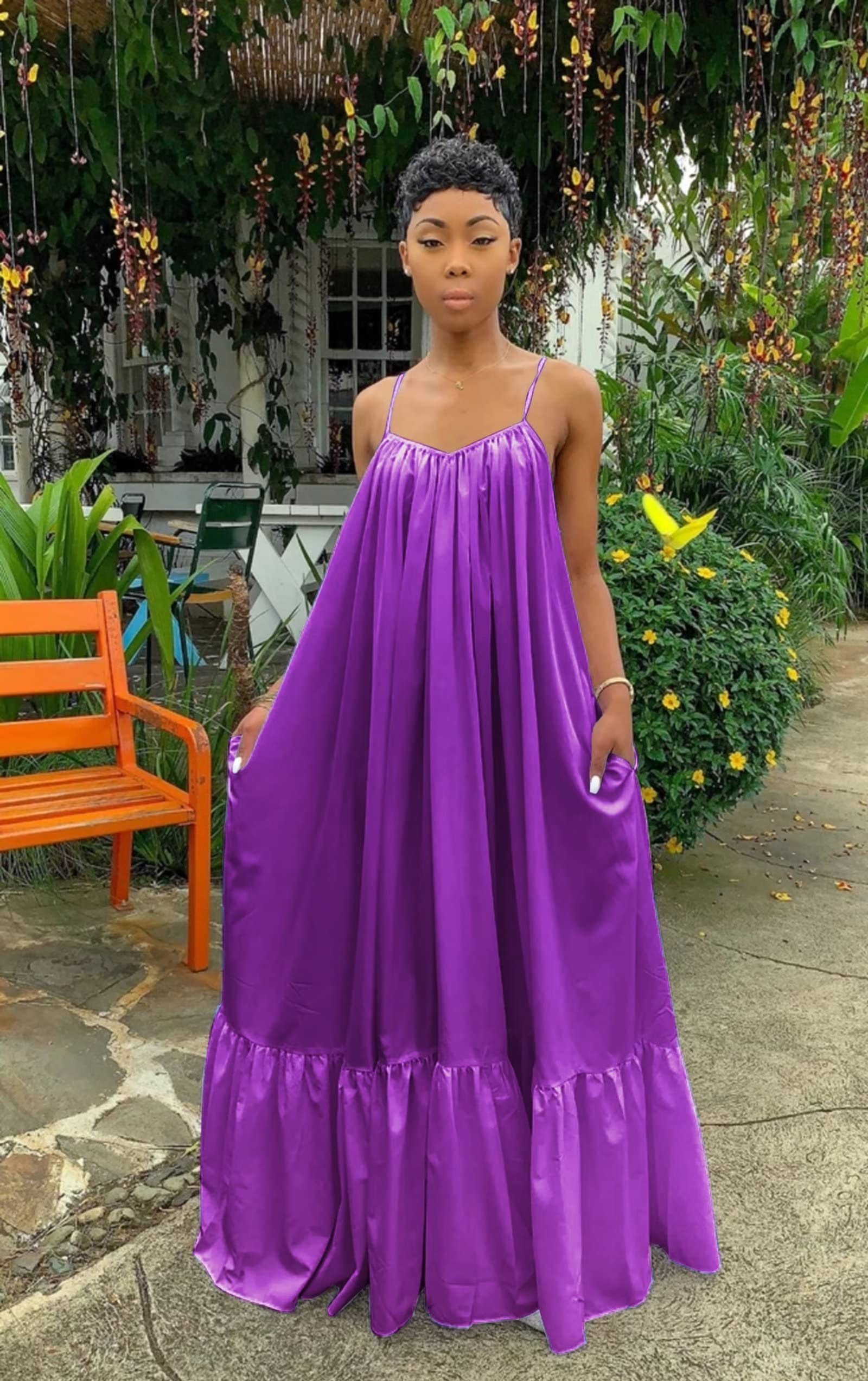 Spaghetti Strap Loose Maxi Dress Orange Medium 1