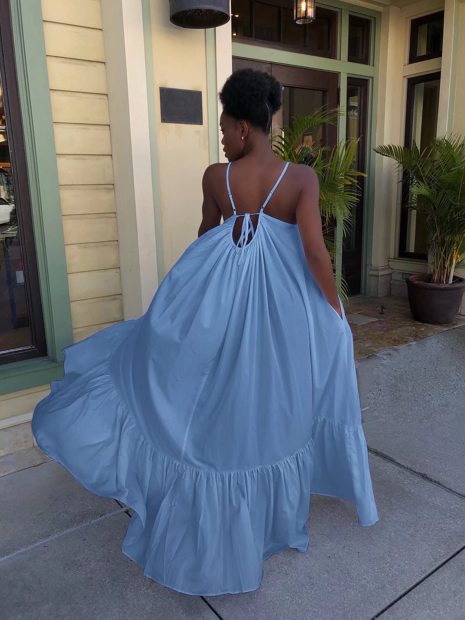 Vacation Travel Long Swing Dress Light Blue X-Large 1