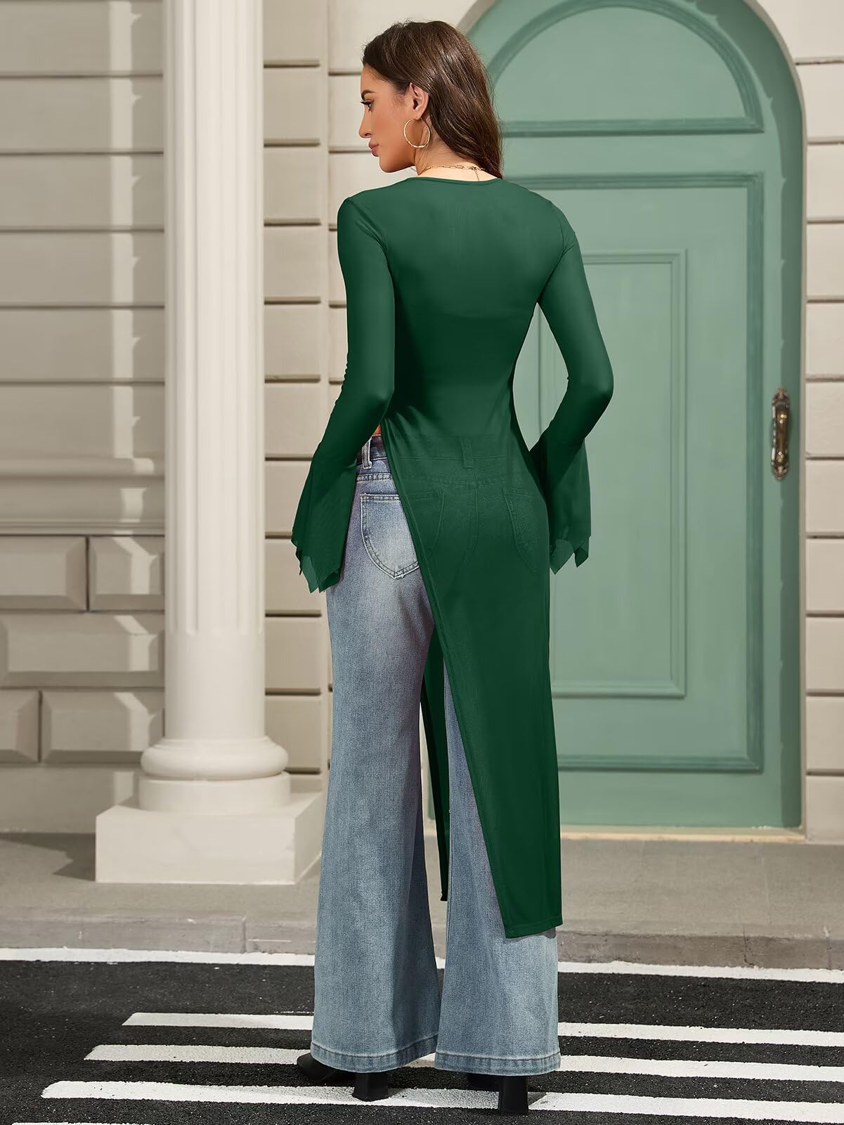 | Mesh Sheer Sexy Tunics Blouse Shirt | Green | Large | 8 |