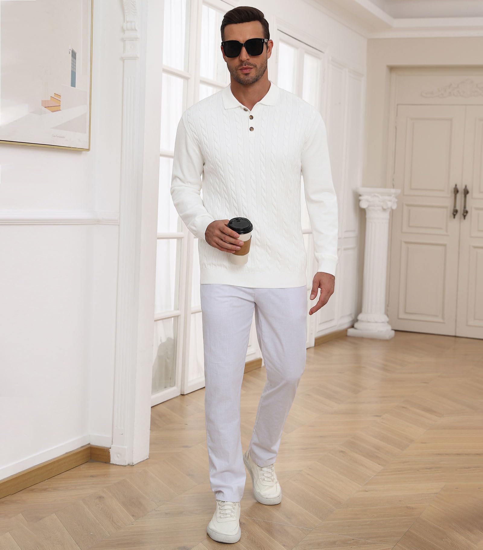 | Men's Polo Sweater Soft Warm Casual | White | Large | 6 |