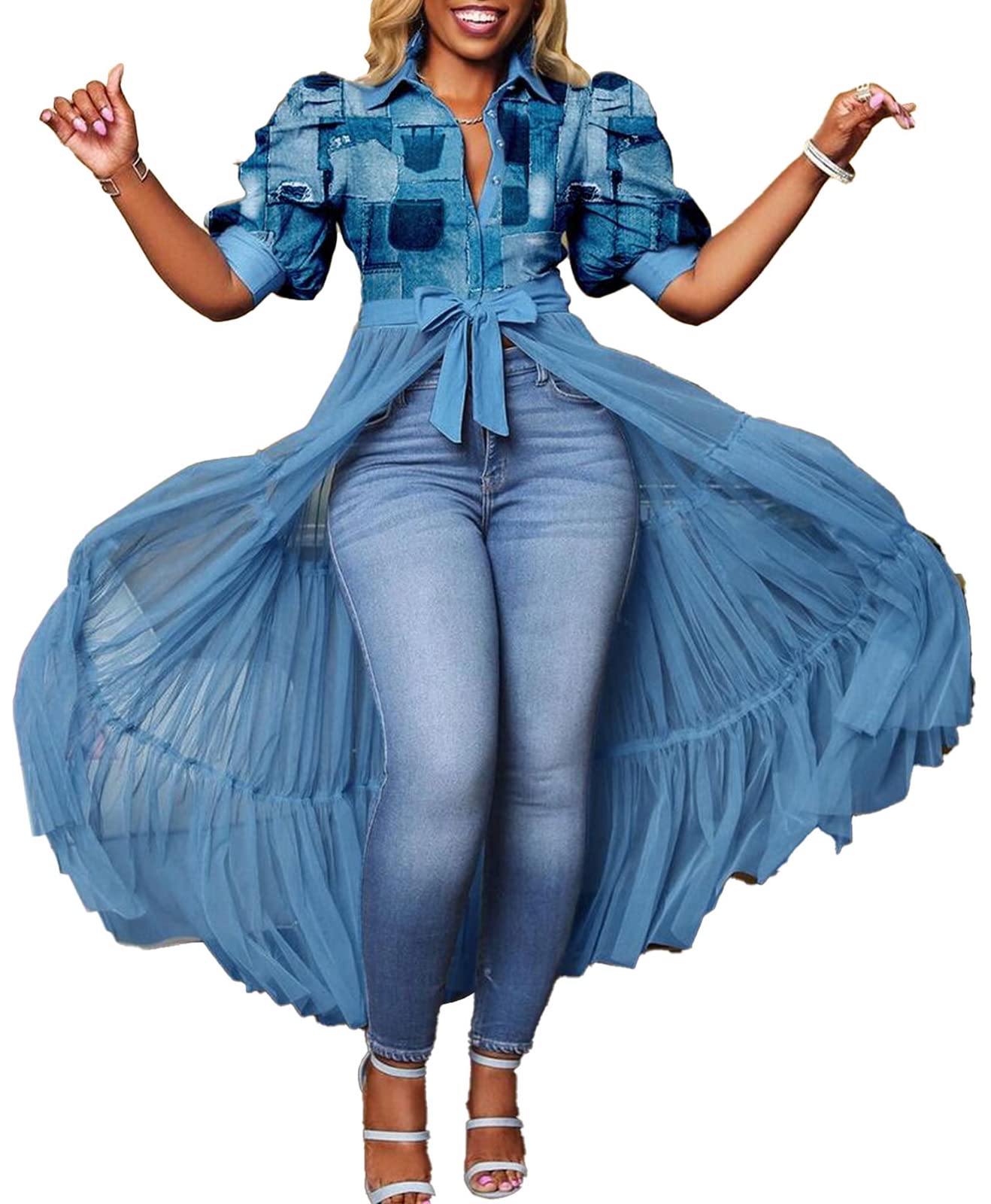| Sheer Mesh Button Down Shirts | C-blue | Large | 7 |