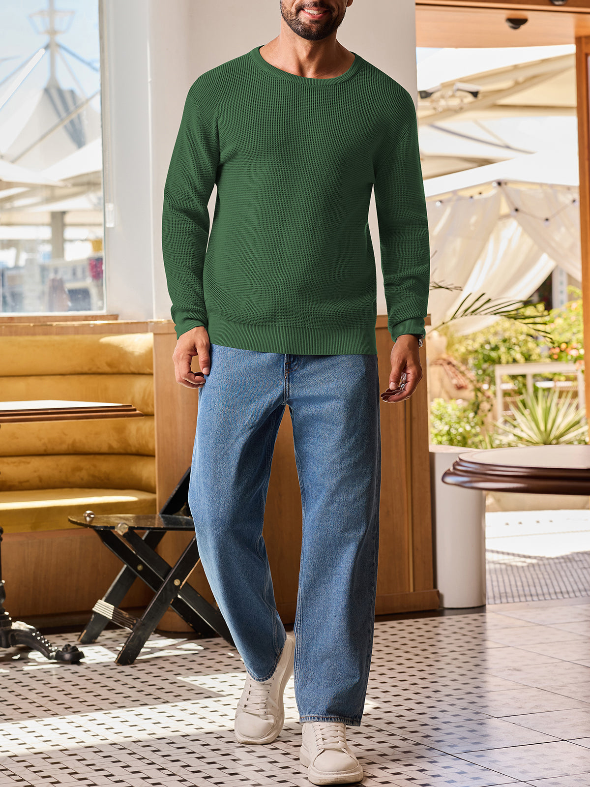 | Mens Waffle Pullover Sweater | Darkgreen | Medium | 7 |