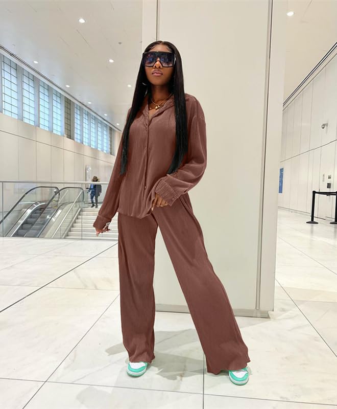 Casual 2 Piece Outfit for Women Brown Medium 4