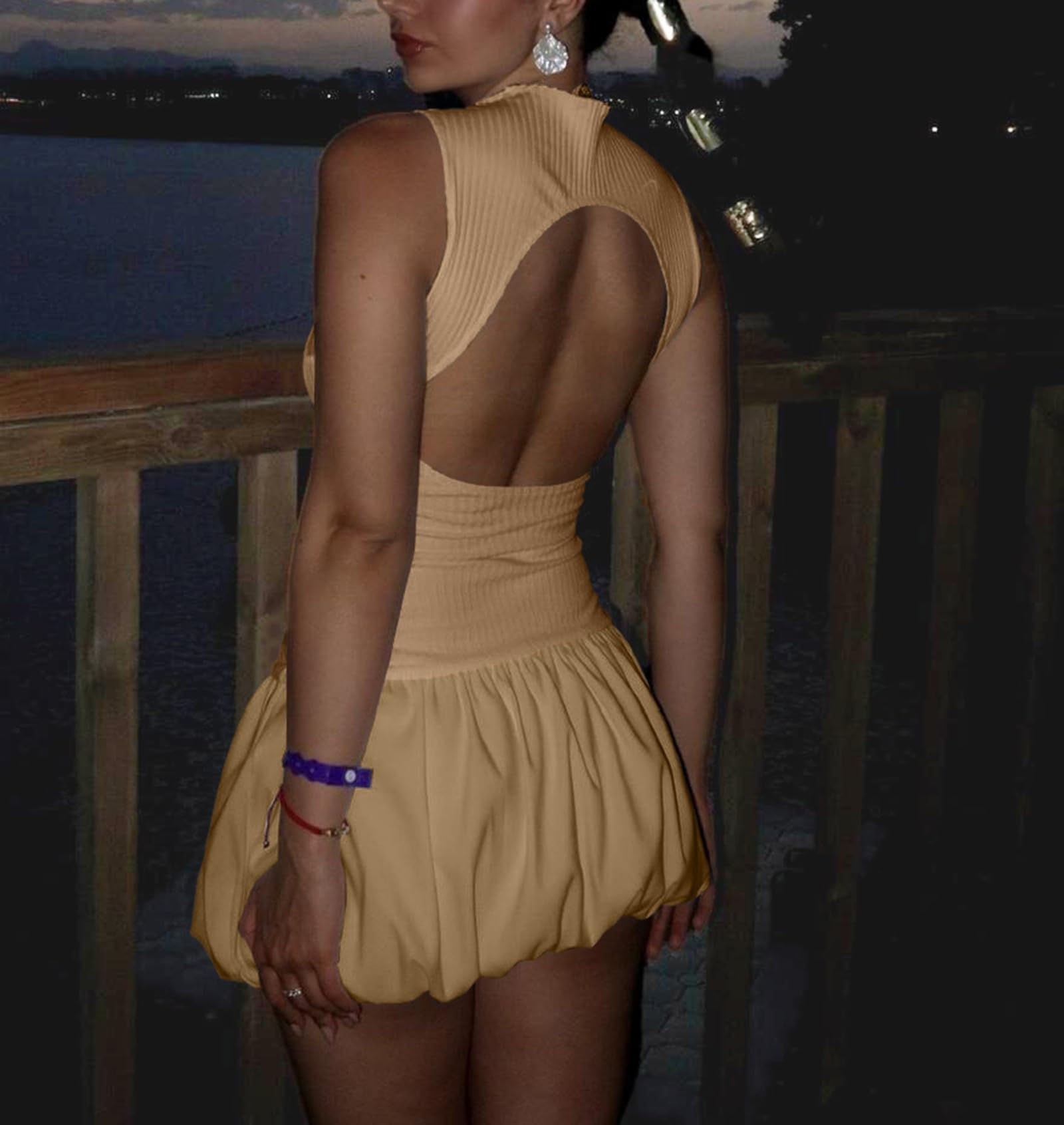 Bubble Skirt Short Dresses Brown Large 5