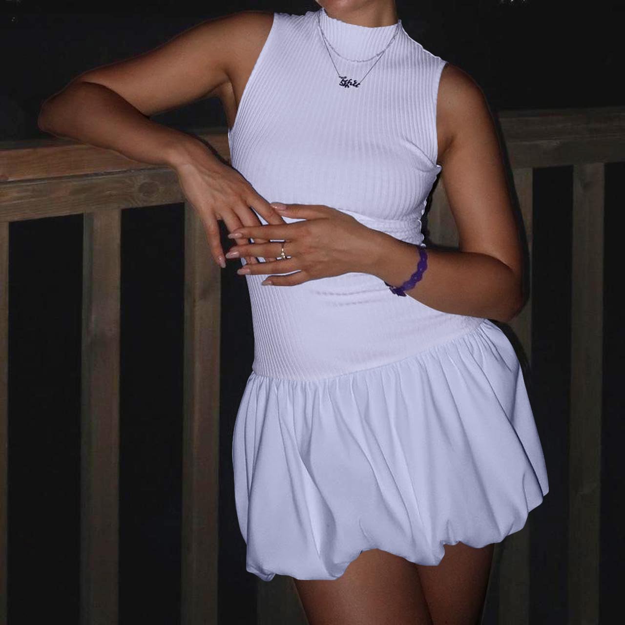 Bubble Skirt Short Dresses Purple Medium 5