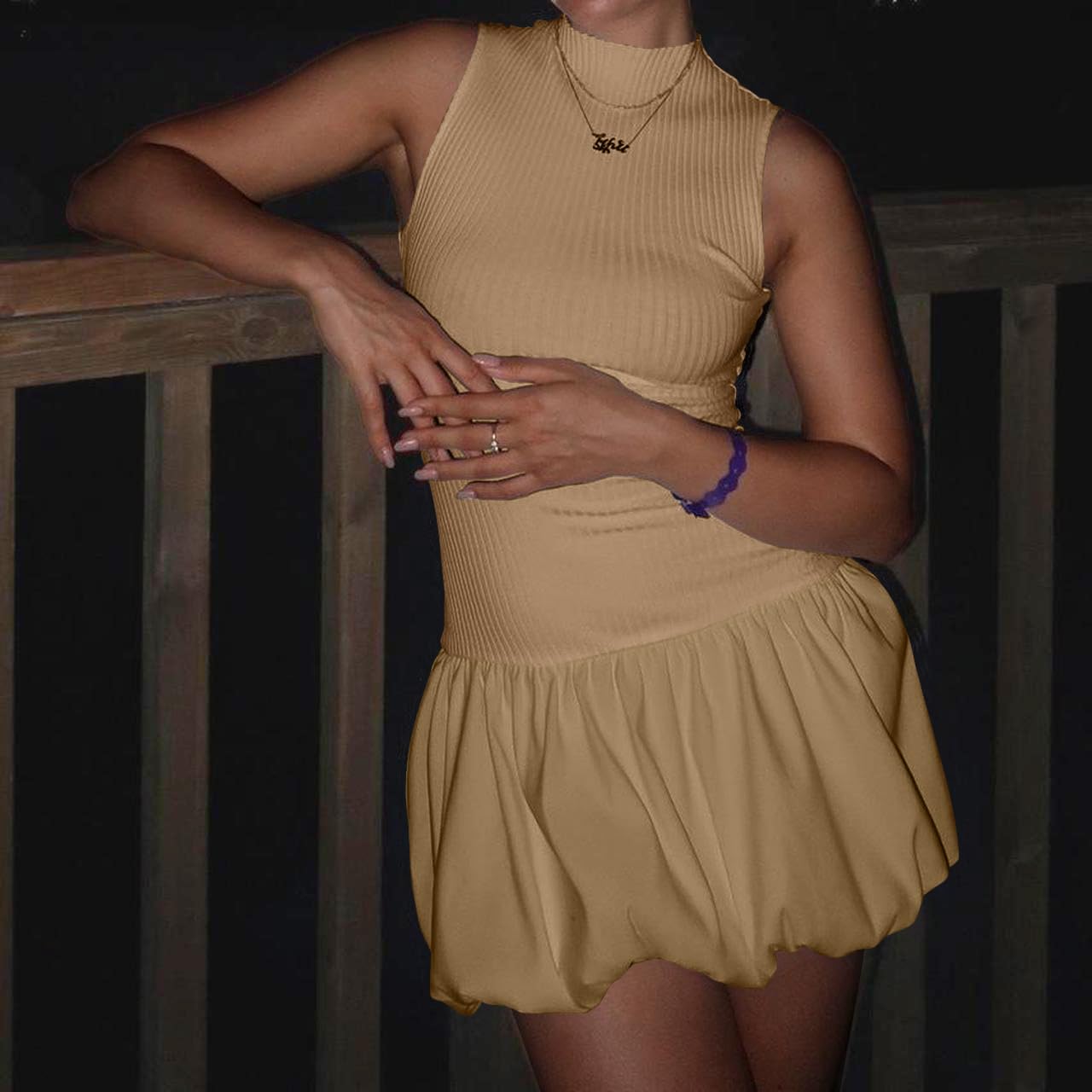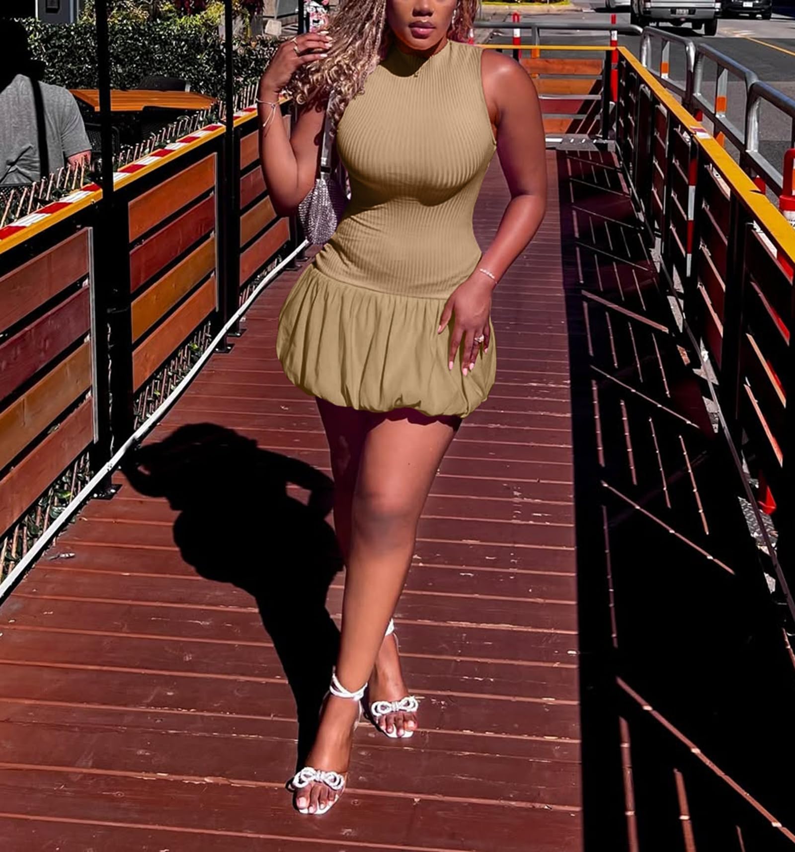 Bubble Skirt Short Dresses Brown Medium 5