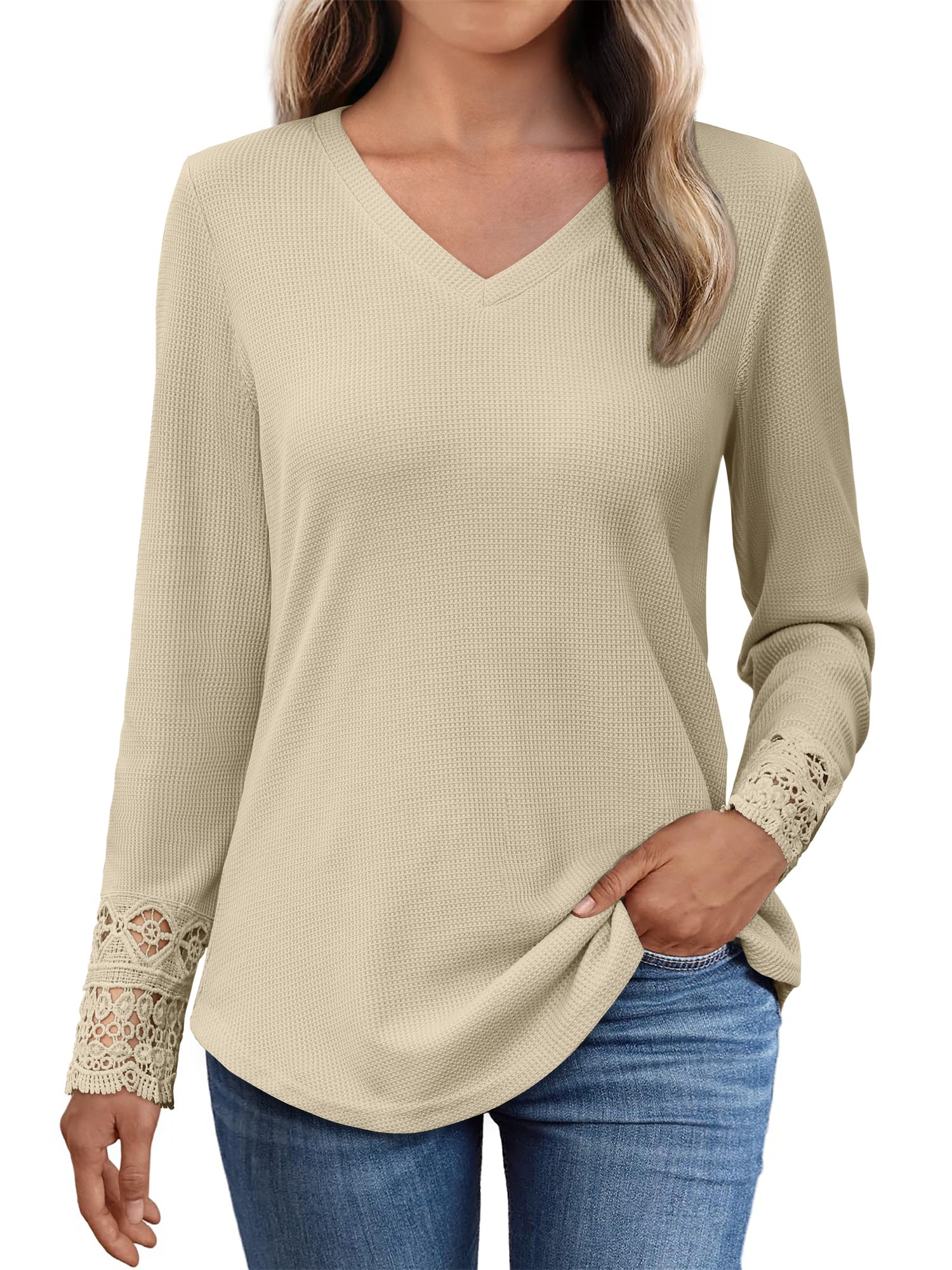| womens long sleeve lace cuff tunic | Khaki | Medium | 7 |