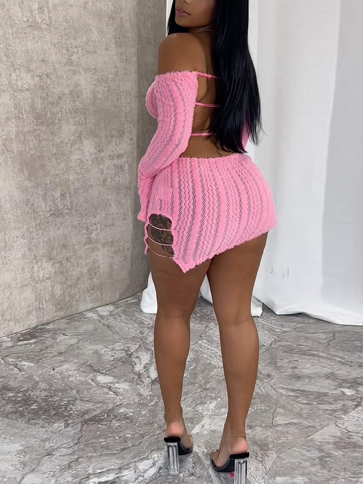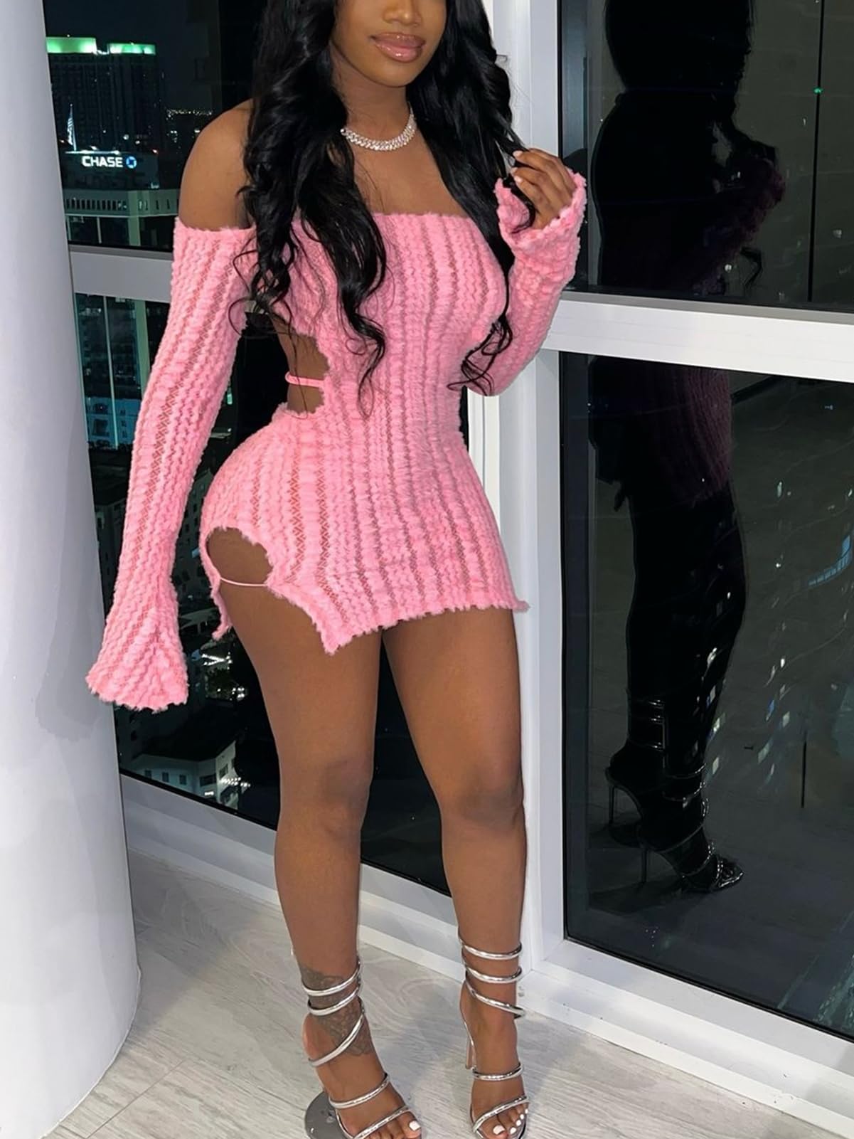 Fuzzy Mini Dress for Women Pink X-Large 4