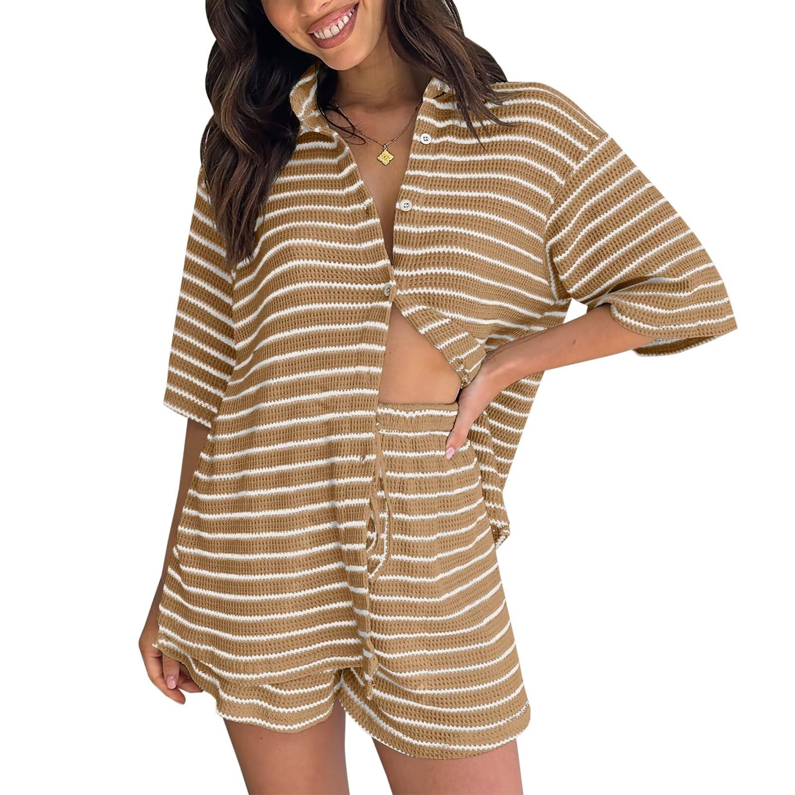 | BWQ Womens Striped 2 Piece Sets | Khaki | Small | 2 |