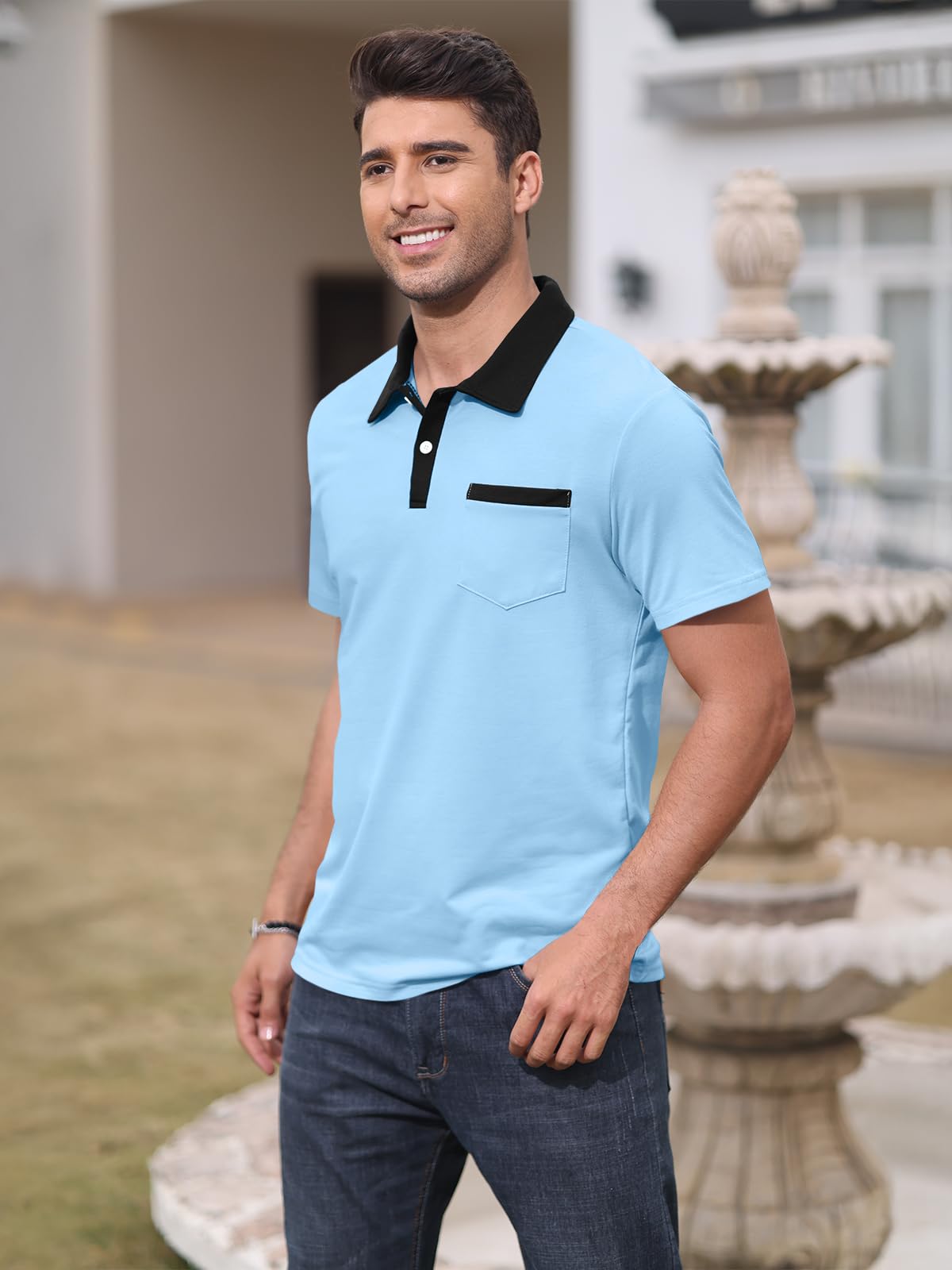 | Mens Short Sleeve Polo Shirts | Skyblue | 3X-Large | 5 |