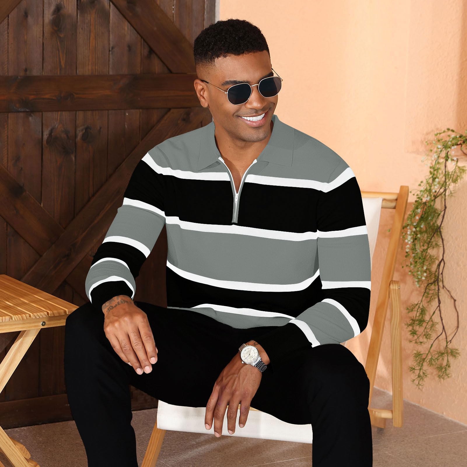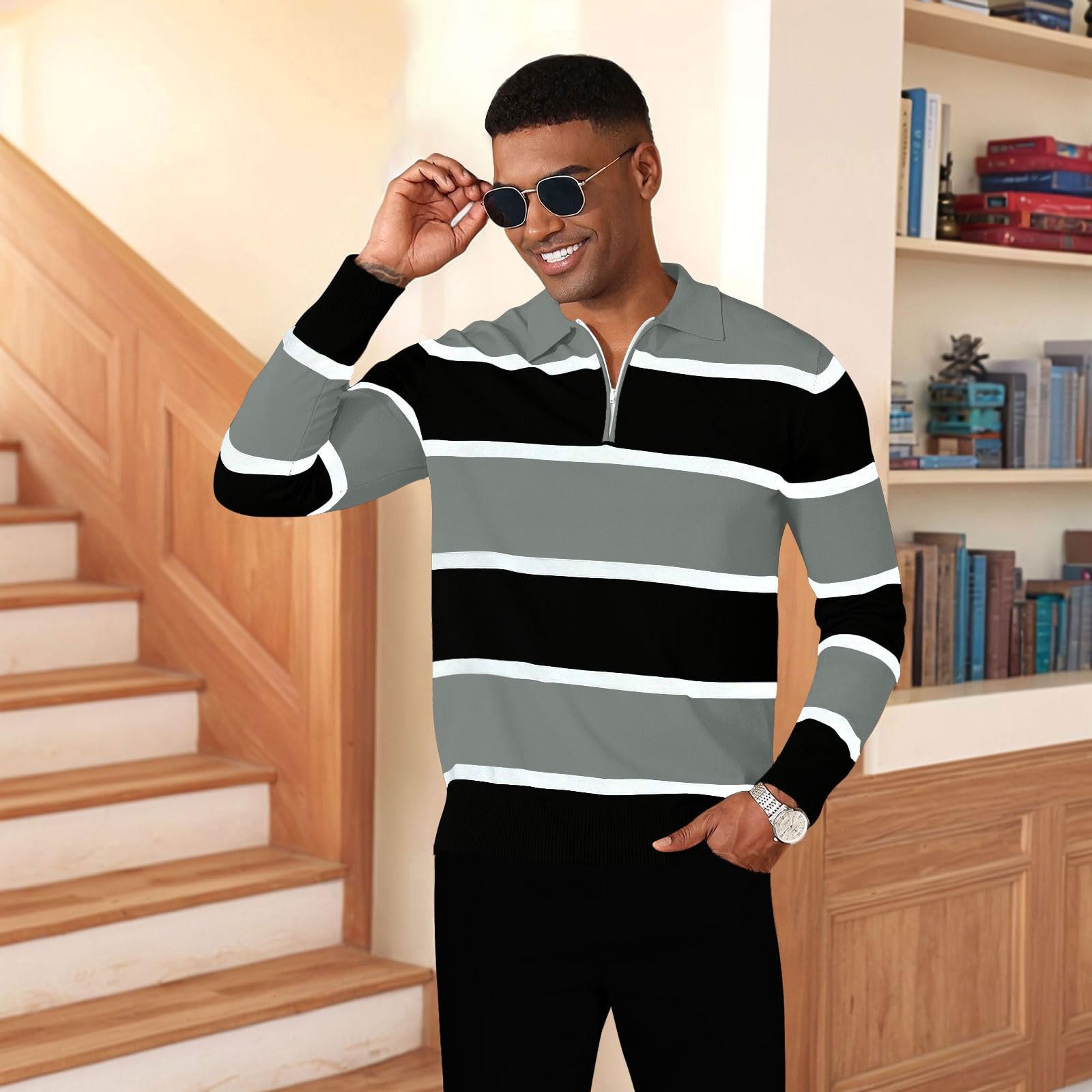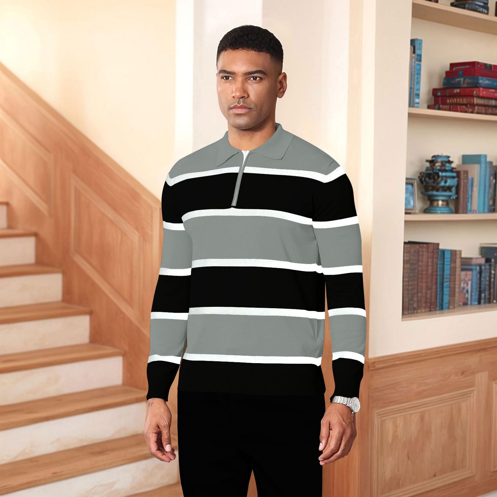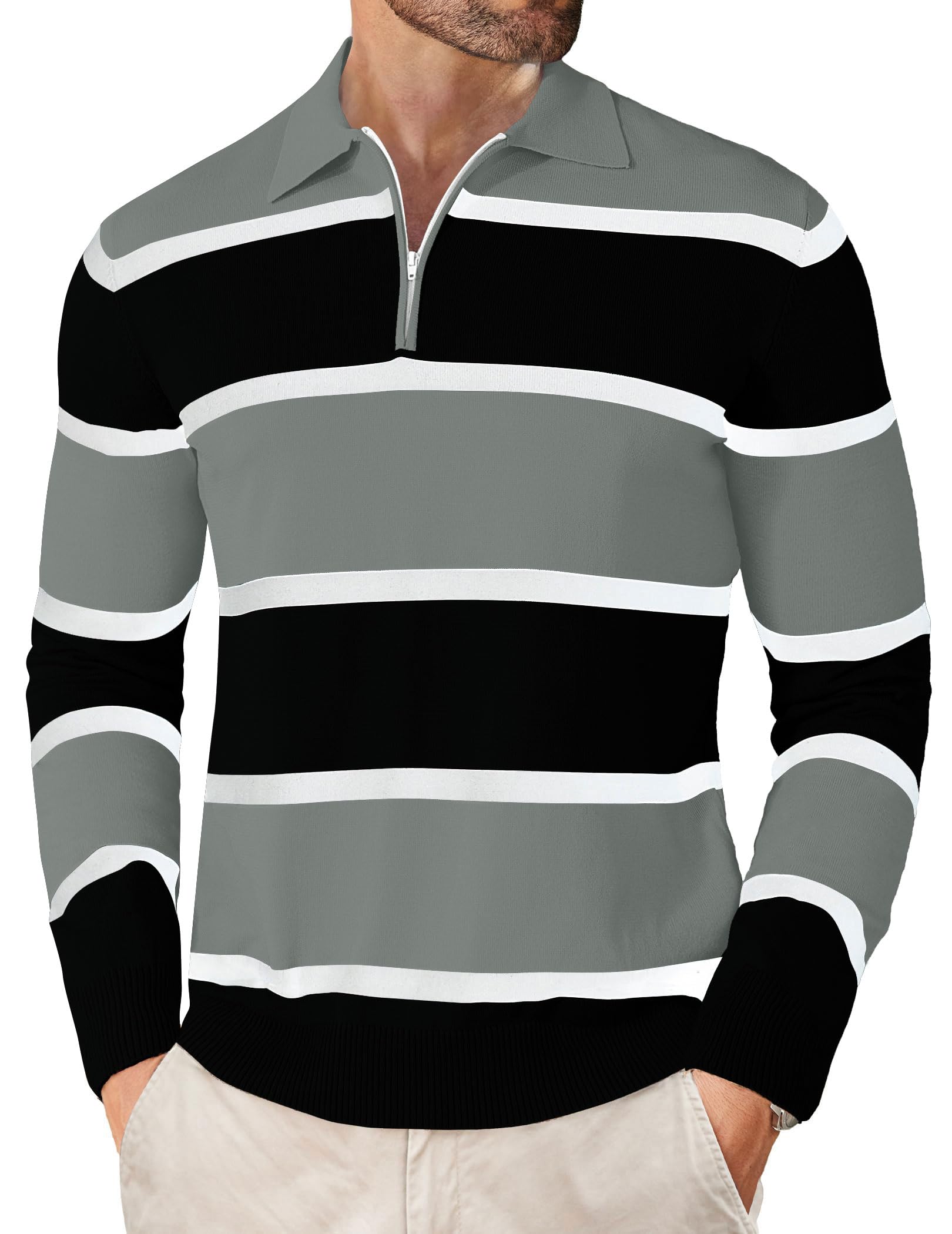 | Long Sleeve Polo Shirts for Men | Grey | Large | 5 |