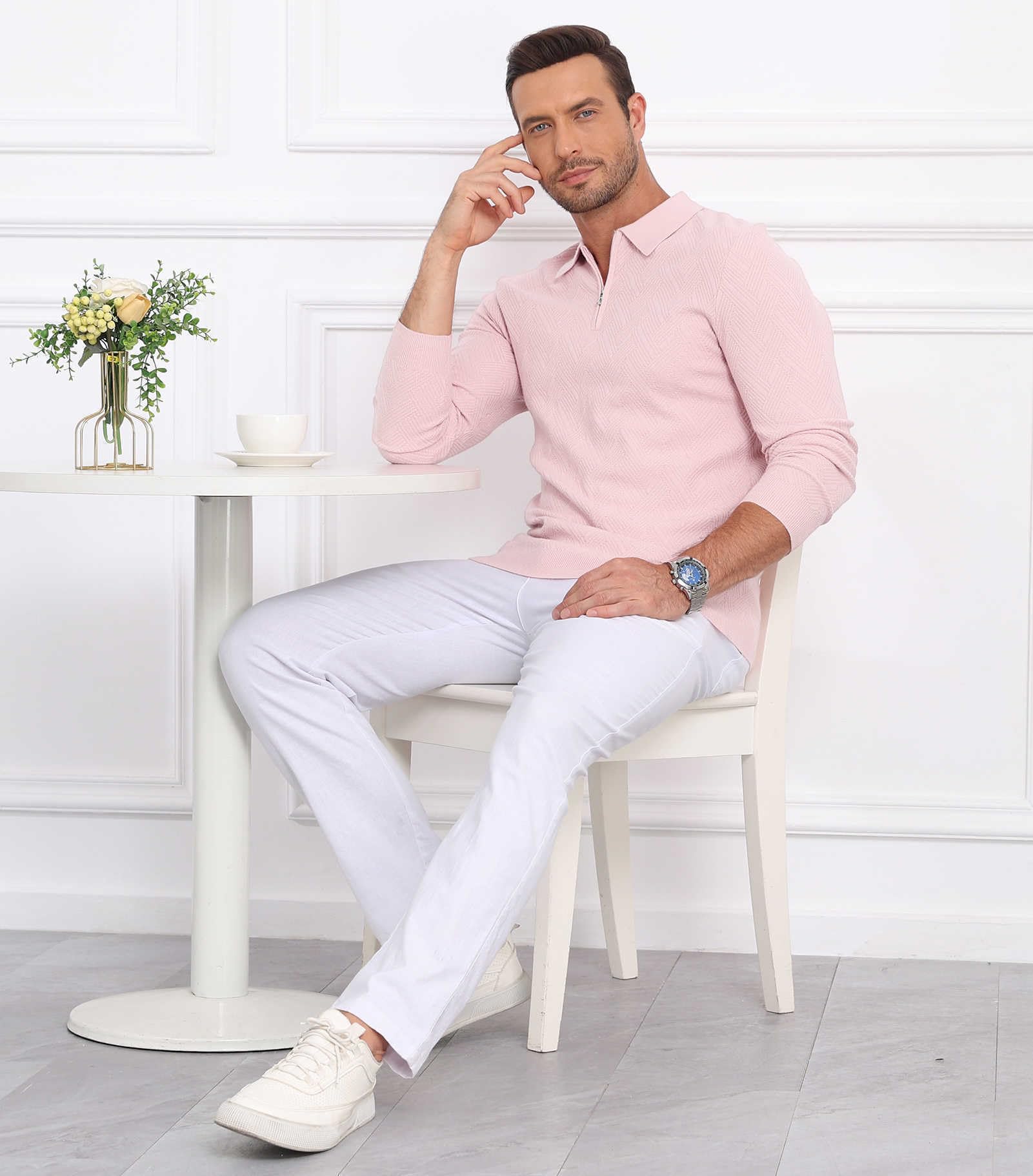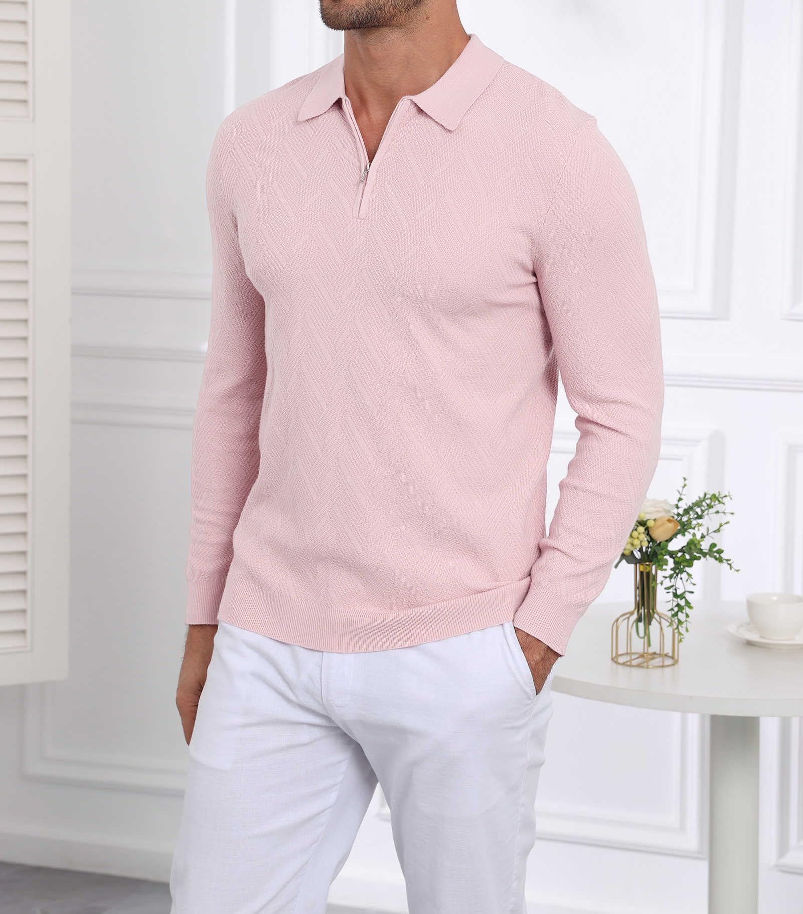 | Men's Slim Fit Polo Sweater Lightwe | Pink | X-Large | 7 |