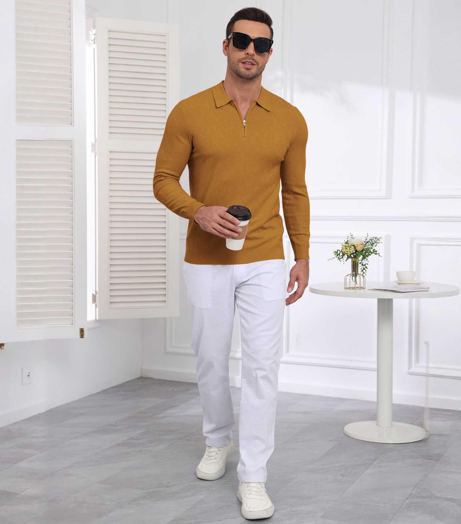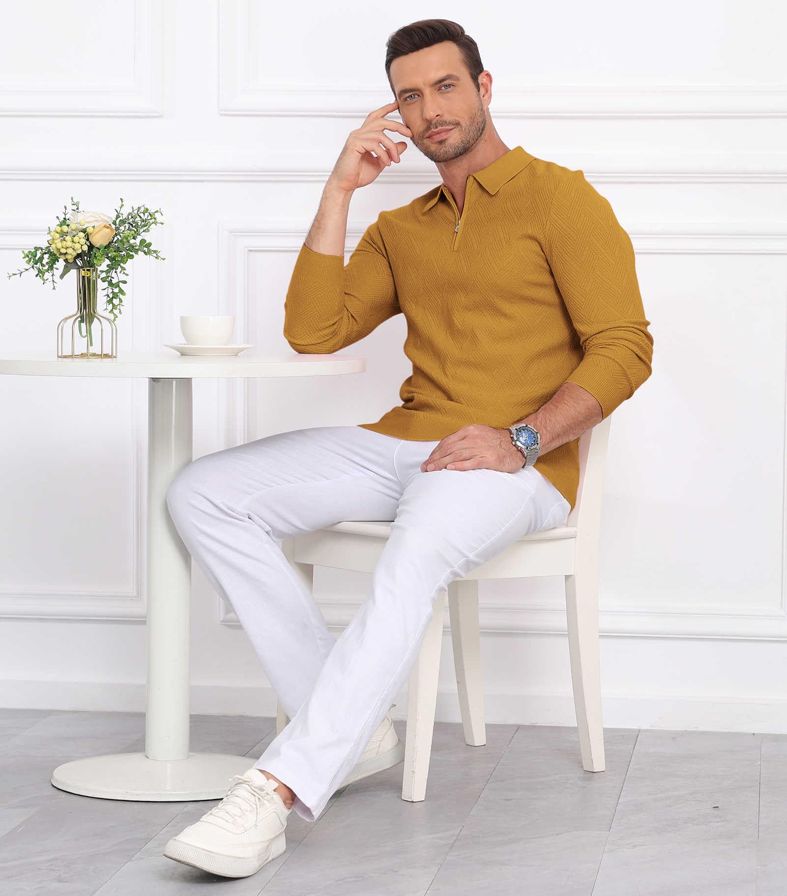 | Men's Slim Fit Polo Sweater Lightwe | Dark Yellow | Large | 3 |