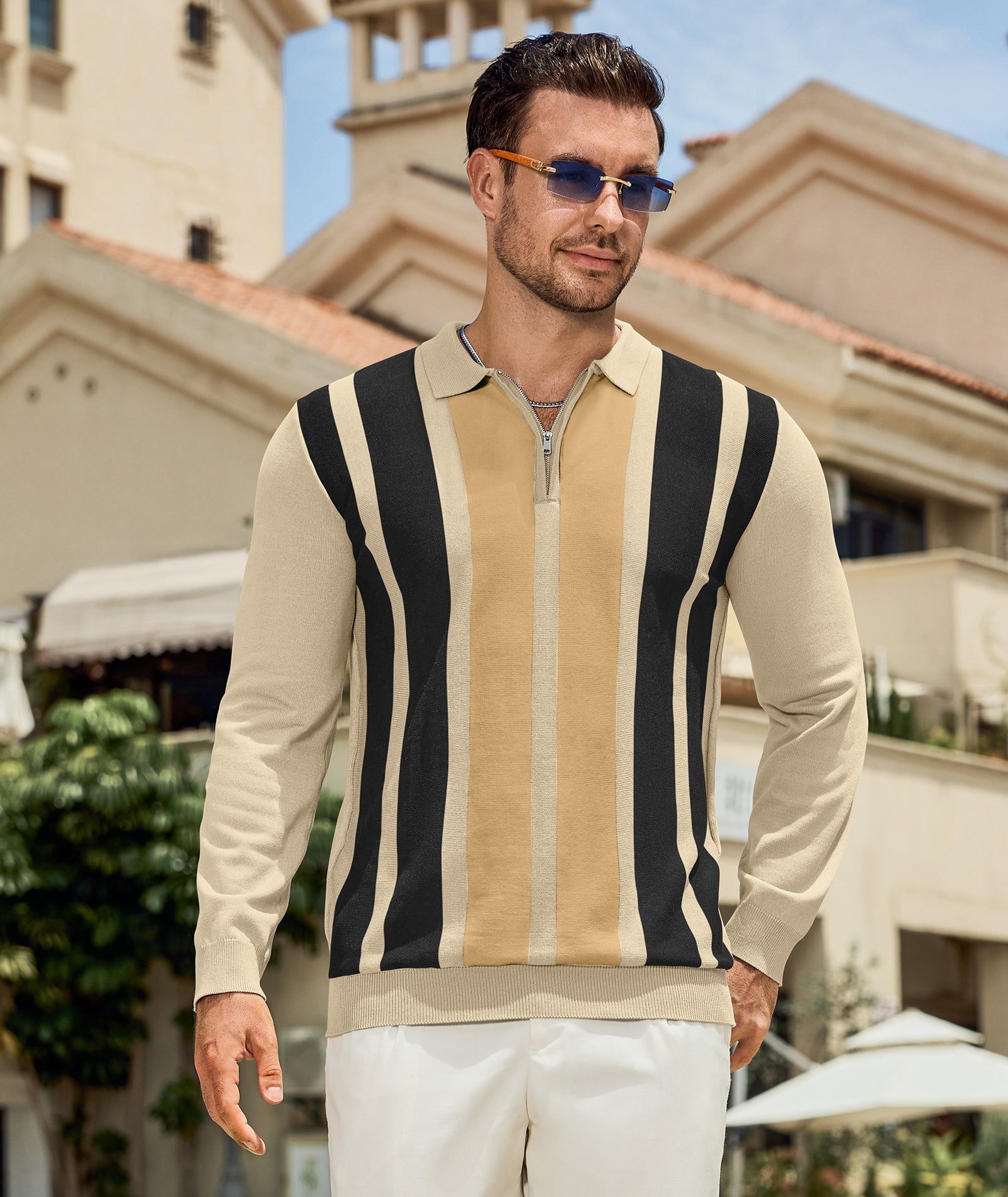 | Mens Knit Striped Polo Shirts Long | Apricot | Large | 9 |