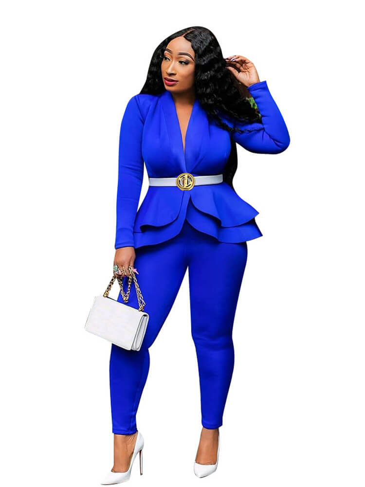 Características: excelentes blazers con pantalones con cuello solapa, cuello vuelto, largo hasta el tobillo, frente abierto, gancho, escote en V, manga larga, pantalones largos tipo lápiz, trajes elásticos excelentes, estilo ajustado.
