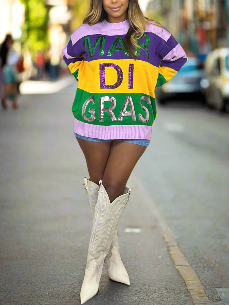Long Sleeve Color Block Sequin Letter Pullover