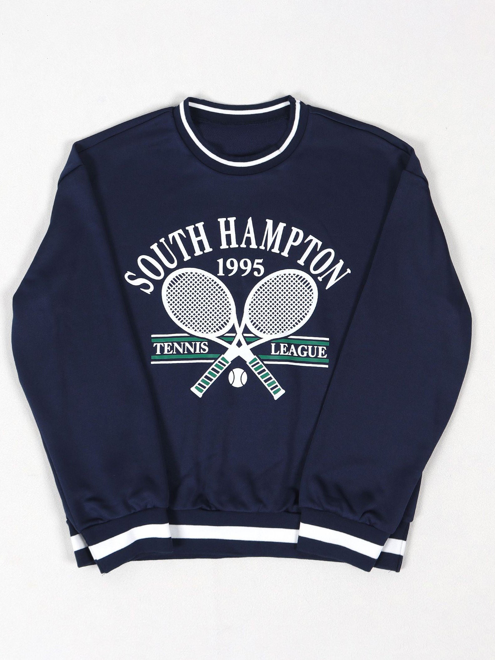 Vintage Tennis Print Sweatshirt Pleated Skirt Set