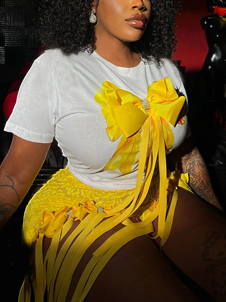 3D Butterfly Print Loose Top & Lace Shorts Set