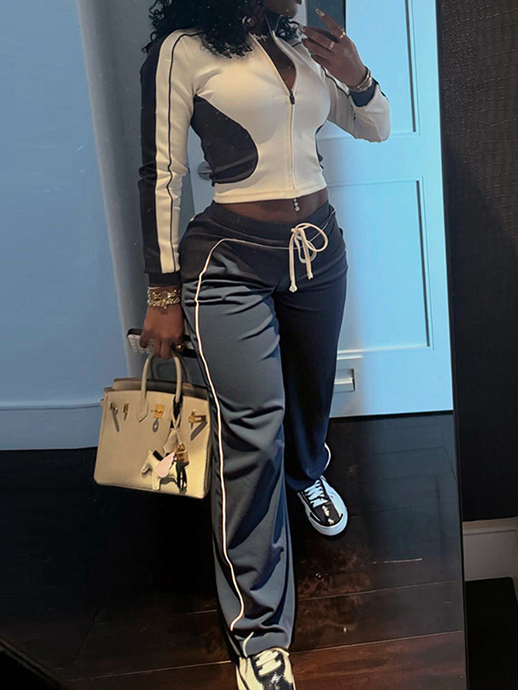 Stand Collar Slim Fit Jacket and Pants Set