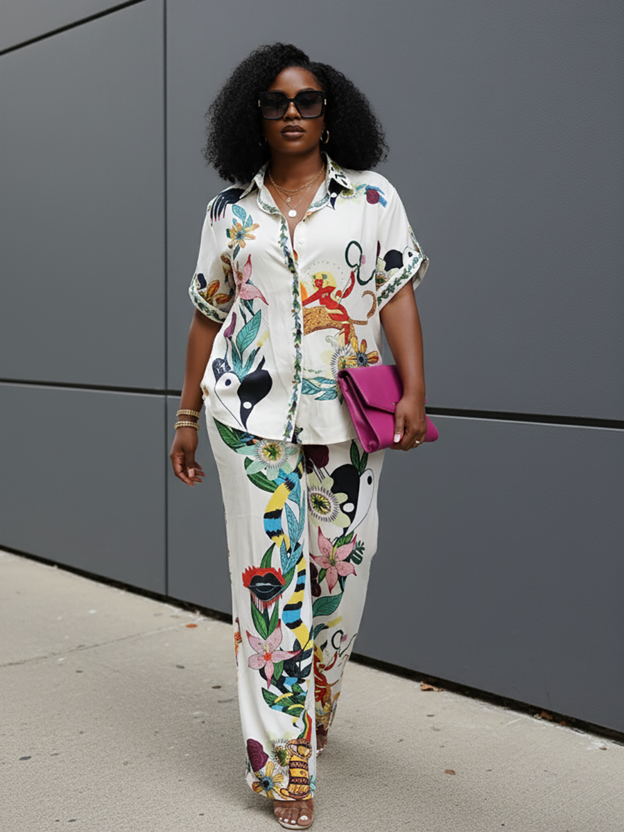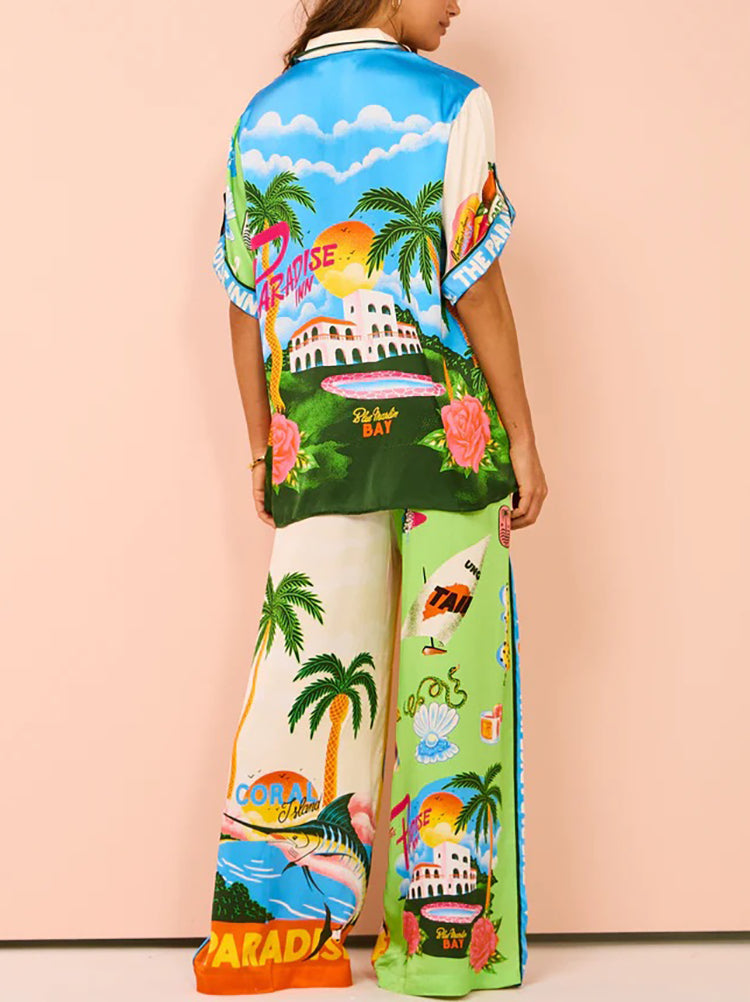 Printed Shirt Wide Leg Pants Set
