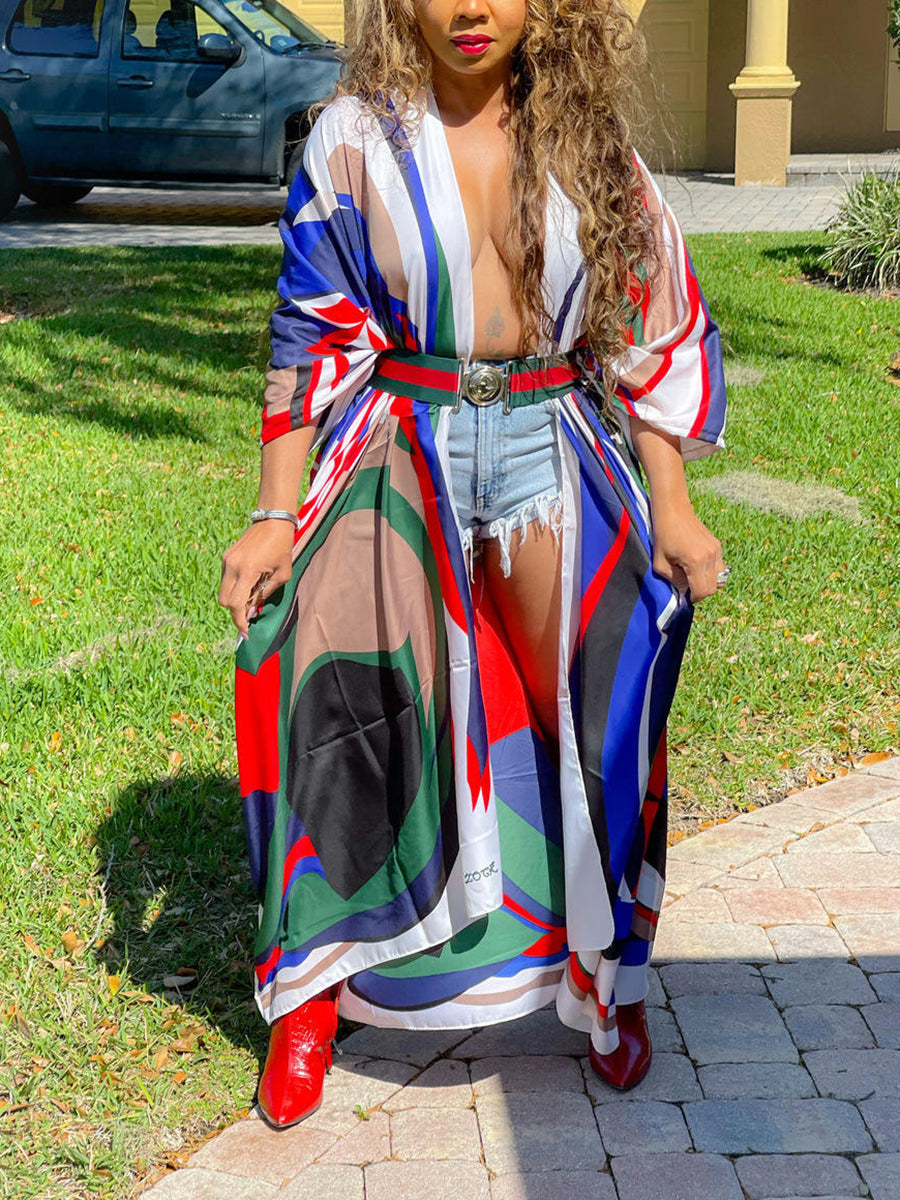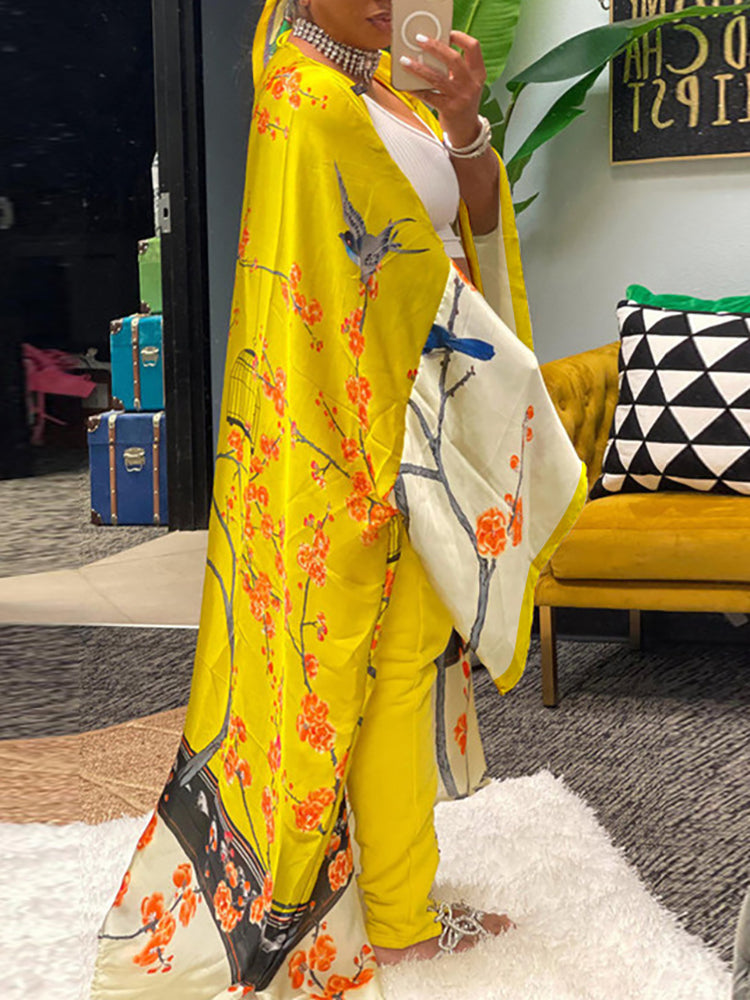 Cárdigan tipo pareo de playa con estampado floral de seda