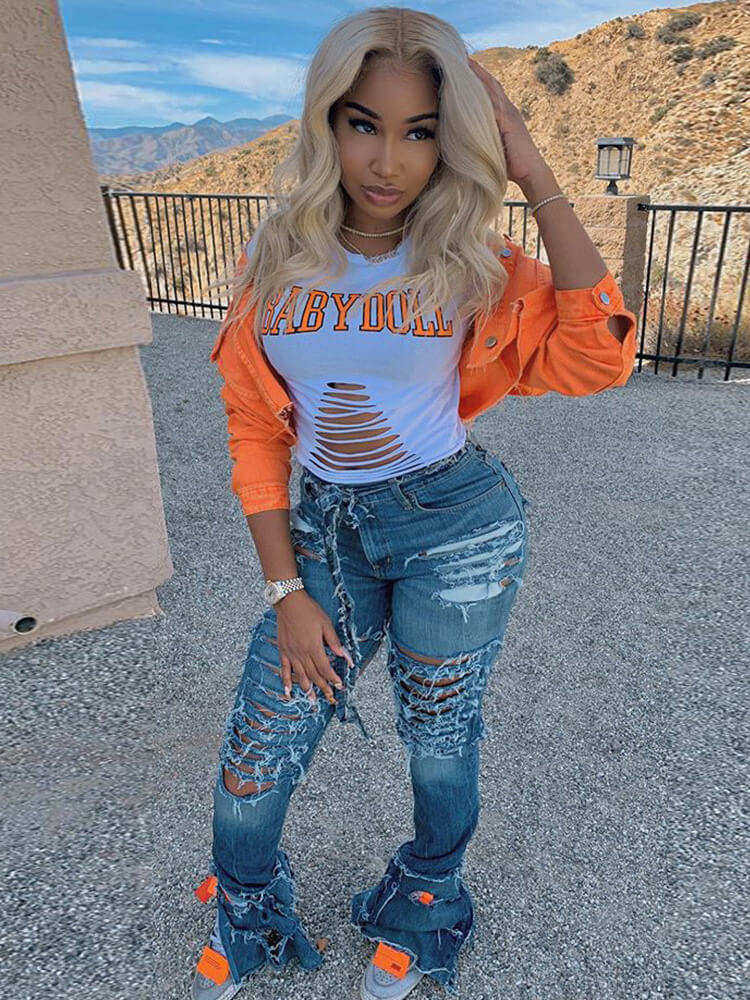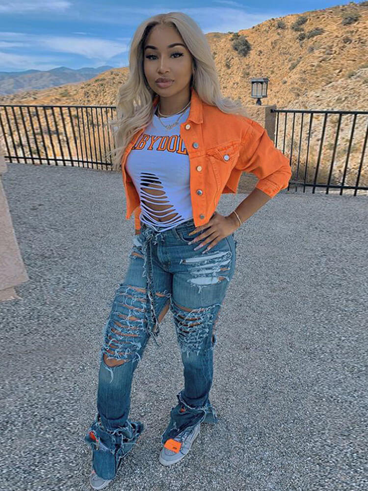 Chaquetas vaqueras rasgadas con botones de manga larga