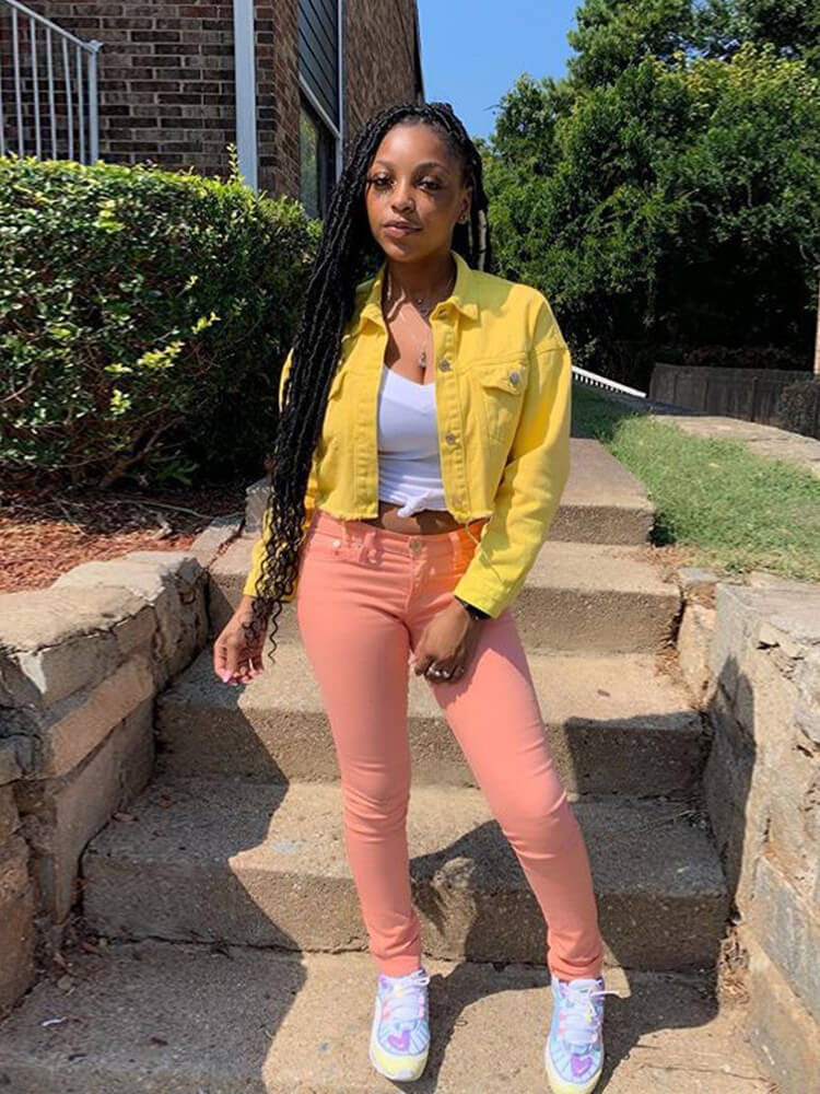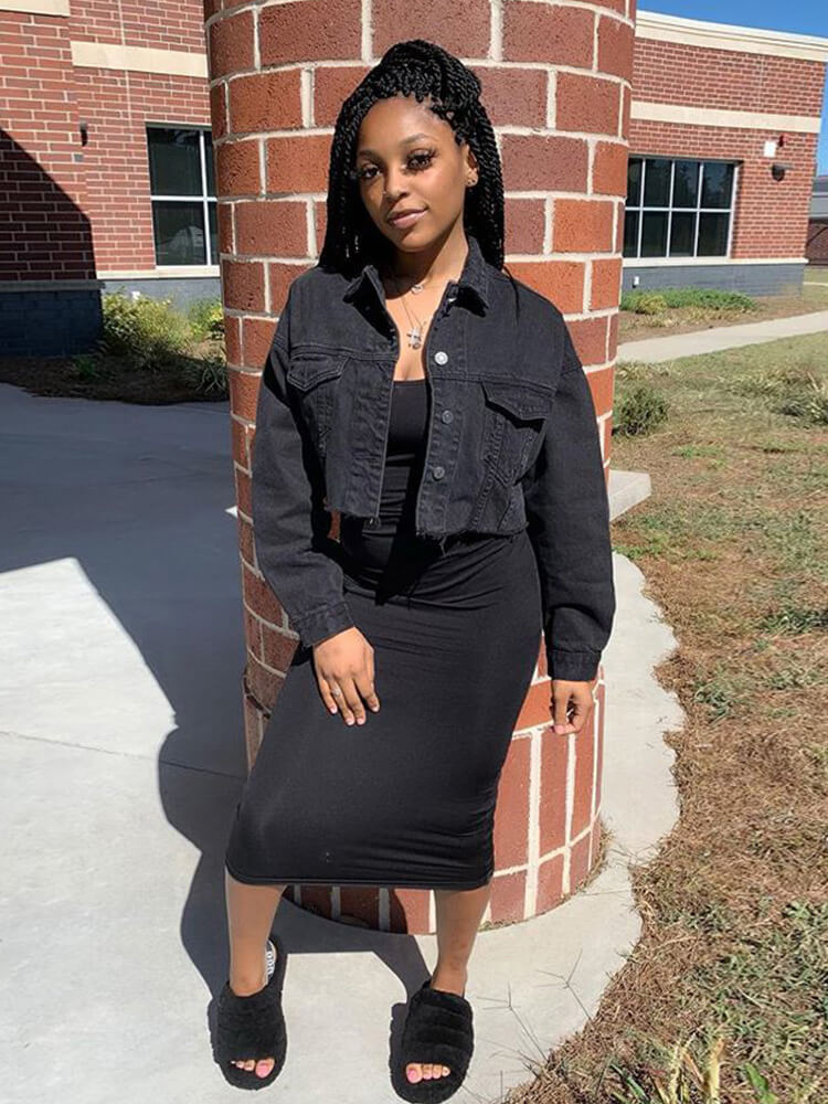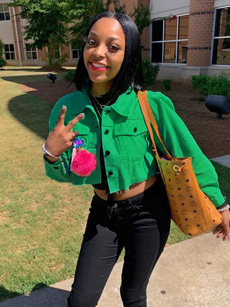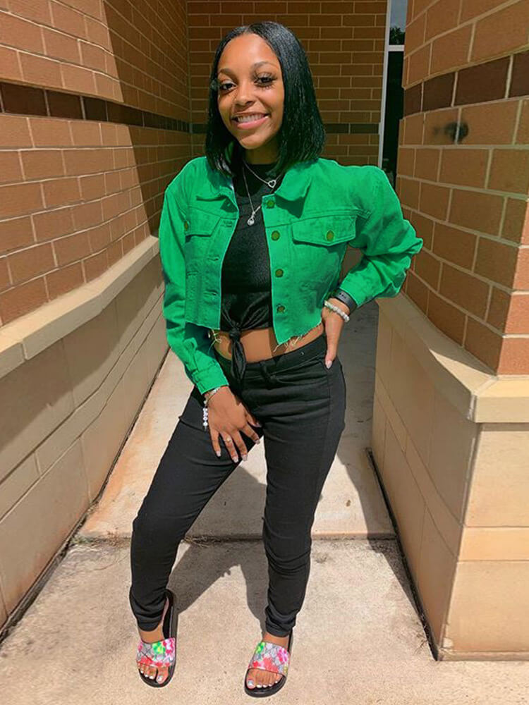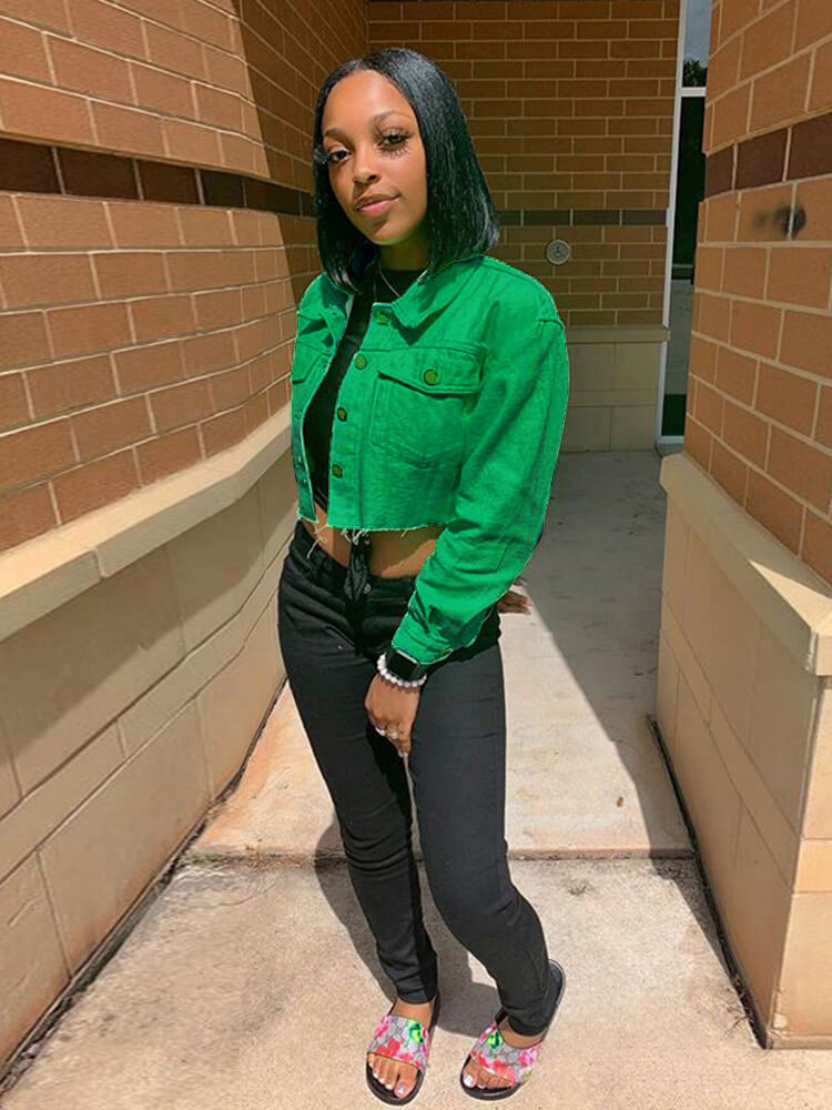 Características: chaqueta vaquera recortada de gran tamaño para mujer, cuello de solapa, cierre de un solo pecho, dos bolsillos en el pecho, manga larga, ajuste casual, linda chaqueta vaquera desgastada sólida.